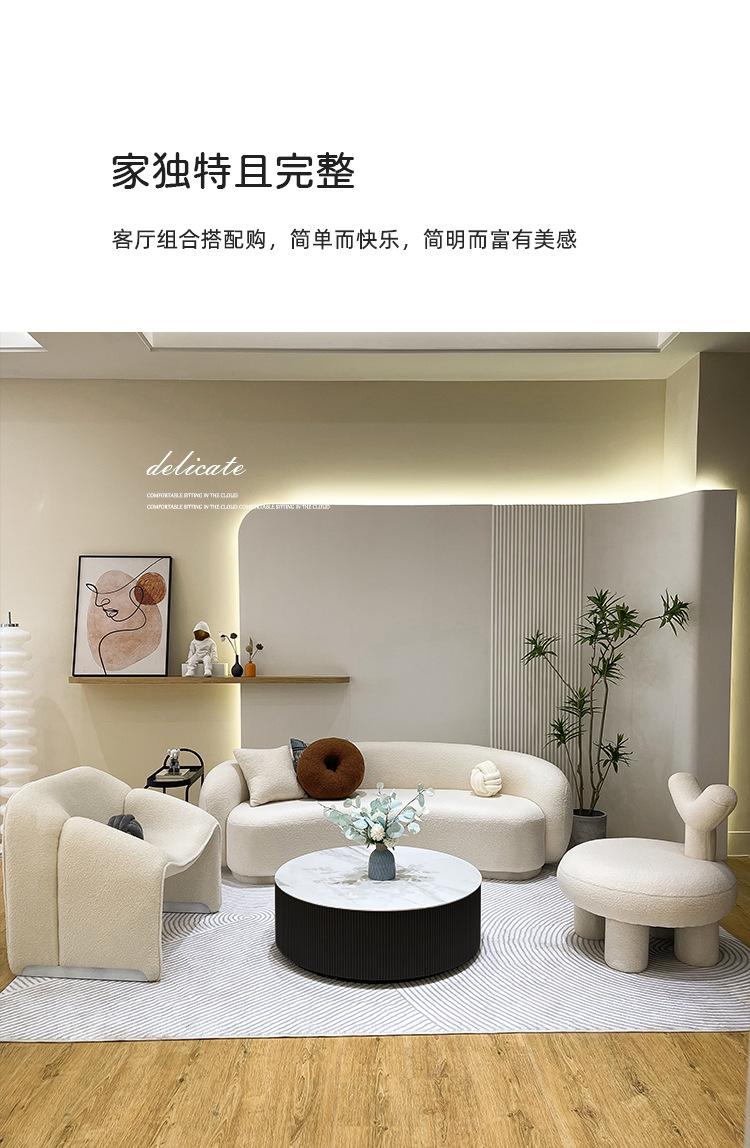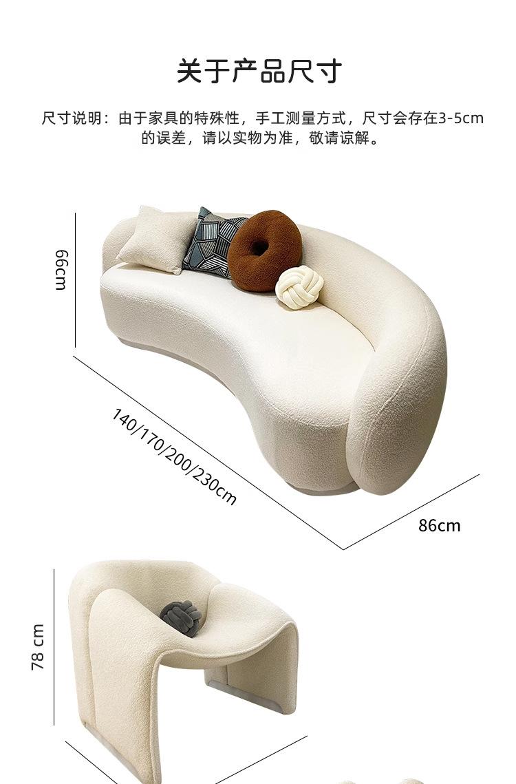 Sofá nórdico minimalista moderno para sala de estar, apartamento pequeño, creativo, lujo ligero, estilo crema, tienda de ropa, curvo, área de descanso para influencers