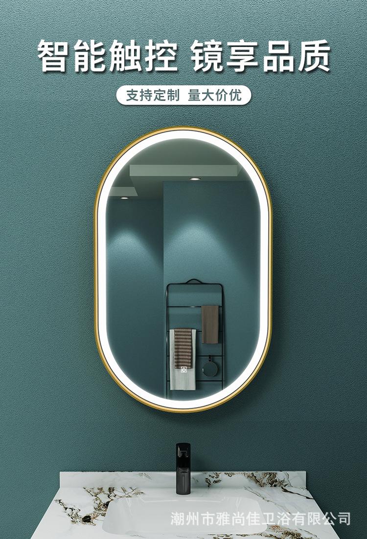 Espejo de Baño Inteligente Montado en la Pared Marco Ovalado de Aluminio Dorado Espejo de Baño LED con Luz Espejo de Tocador Espejo de Baño