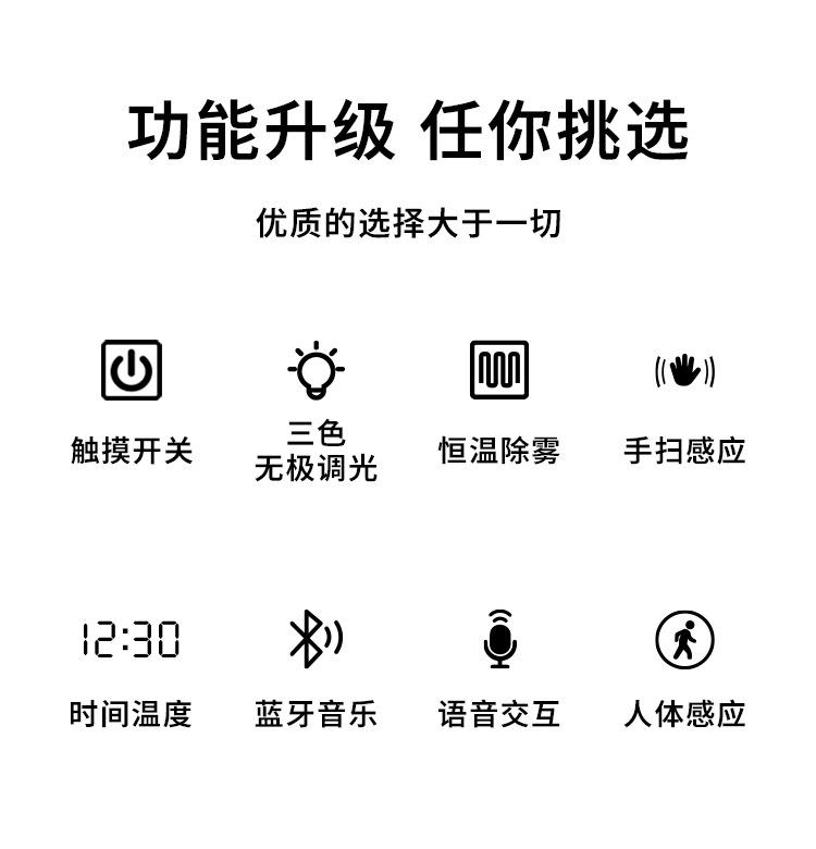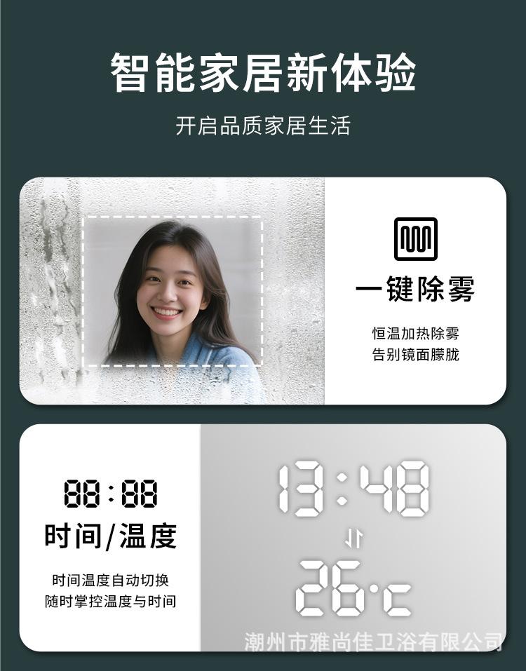 [human body sensing] time temperature + double touch + three-color light + defogging