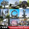 Exterior grande acero inoxidable escultura galería marco espejo cepillado metal hueco luna bienes raíces paisaje acuático adornos de metal