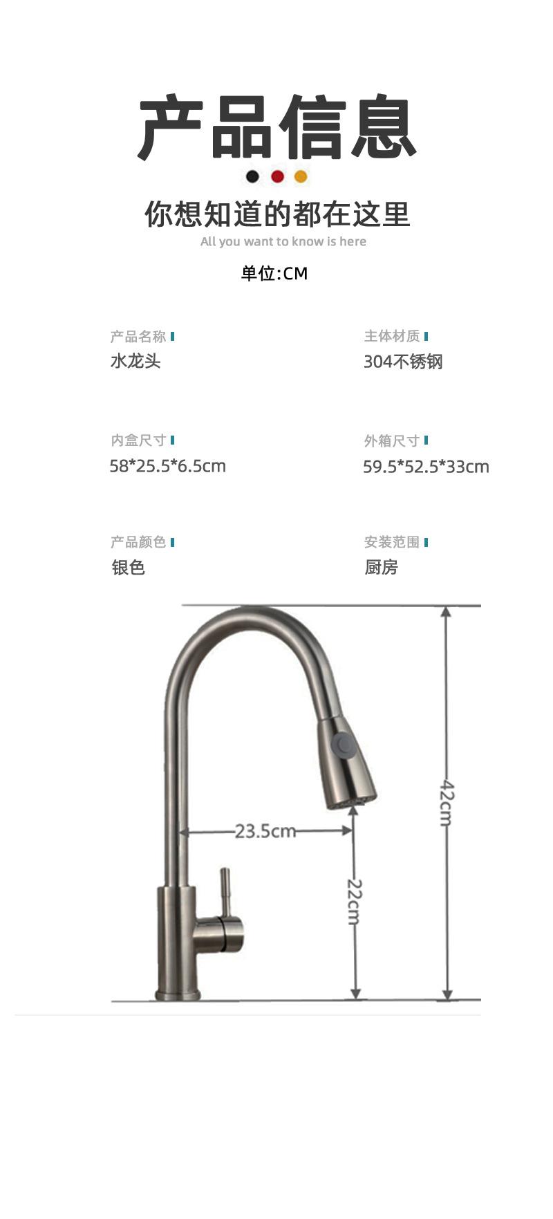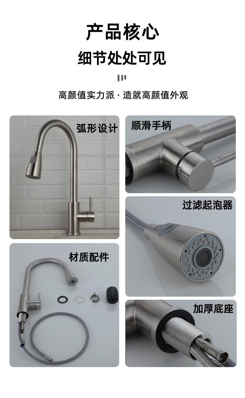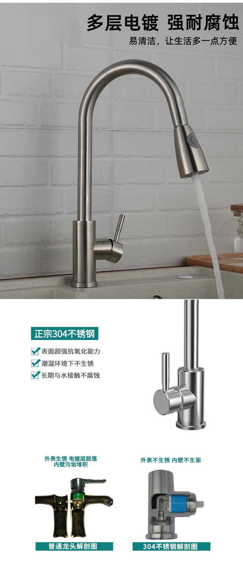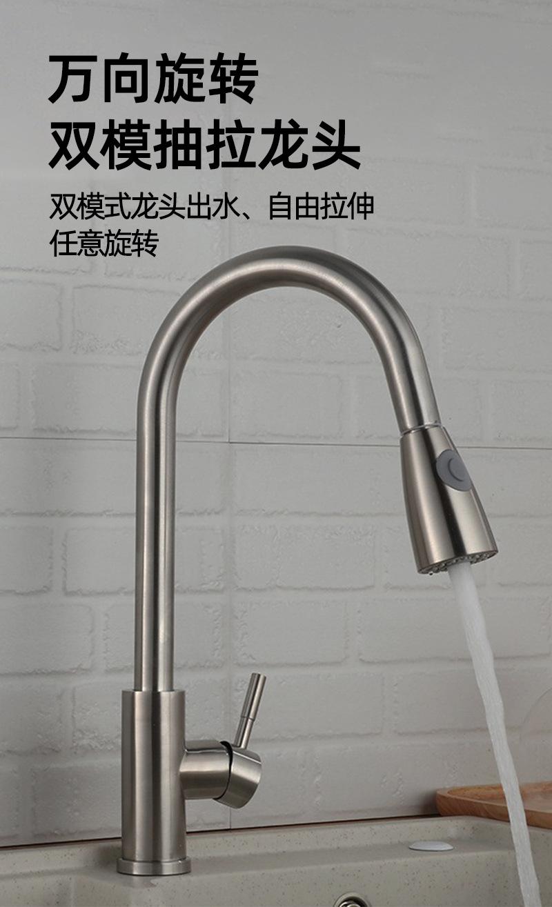 Grifo de Cocina Personalizado Acero Inoxidable 304 Fregadero Extraíble Caliente y Frío Fregadero Grifo Telescópico Universal