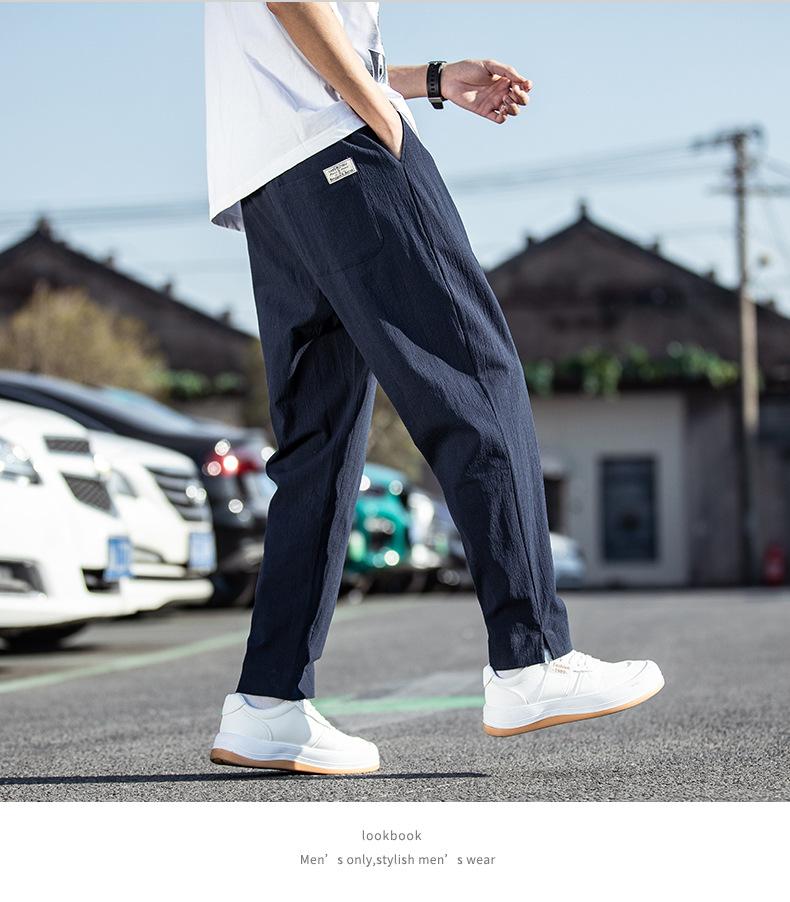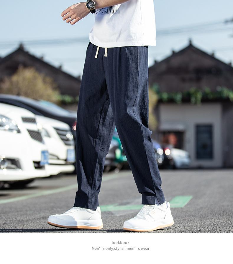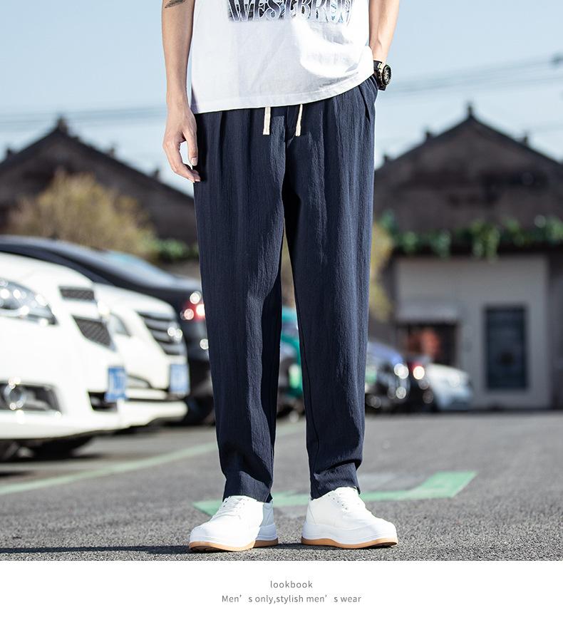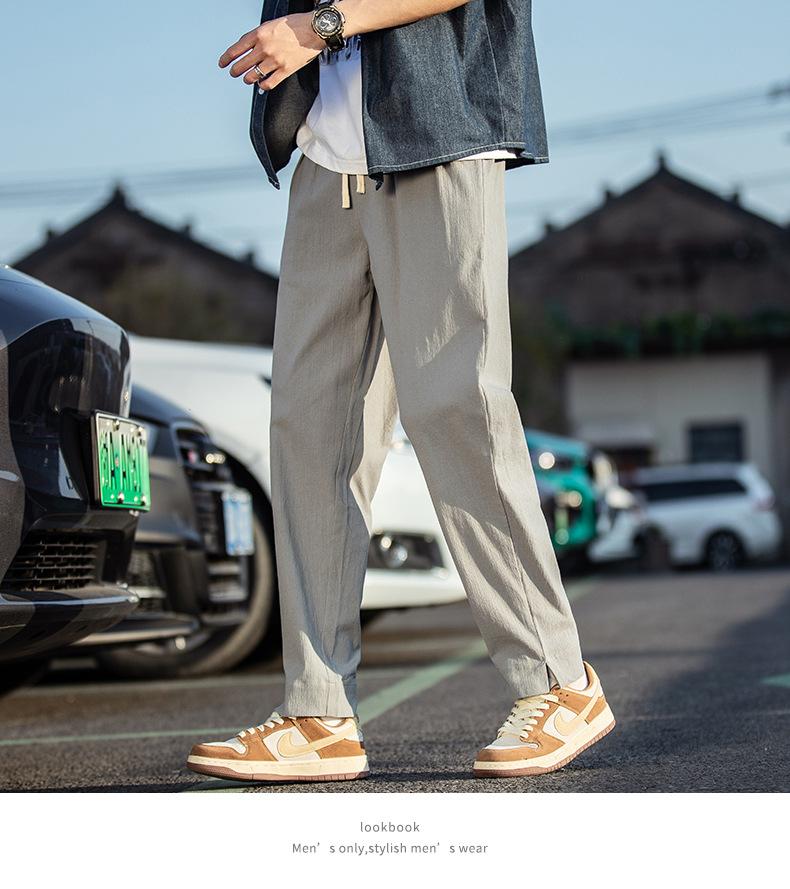 Pantalones Casuales de Verano 2025 Nuevo Estilo Chino Algodón y Lino para Hombre Pantalones de Moda Talla Grande Holgados Color Sólido Pantalones Recortados