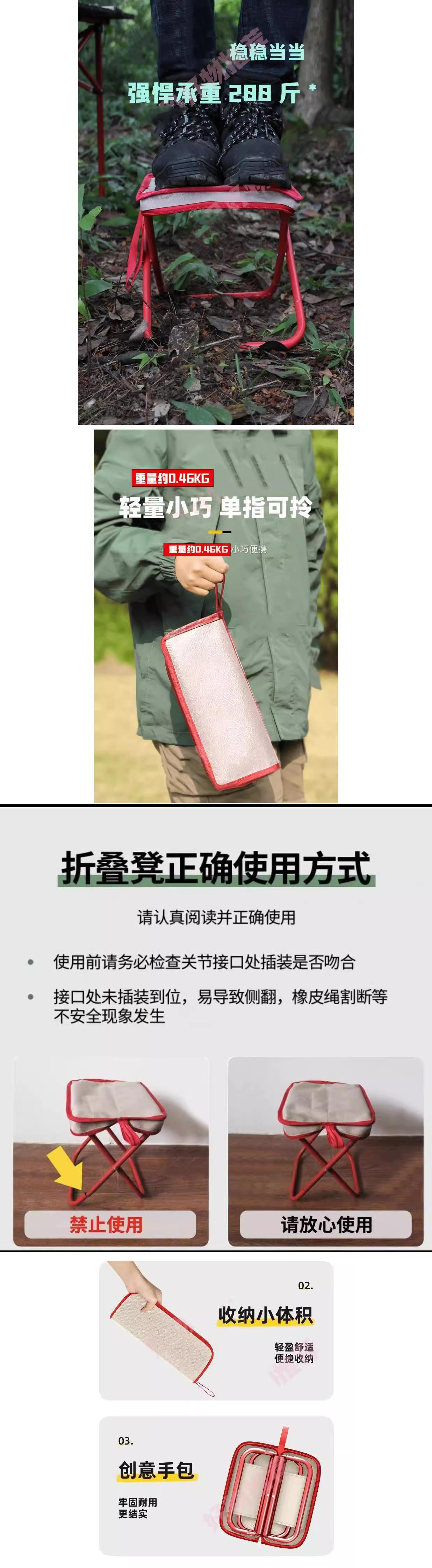 Taburete Pequeño Plegable Rojo Bolso Silla Plegable Pesca Picnic Camping Taburete Multifuncional Engrosado Cola Taburete Plegable