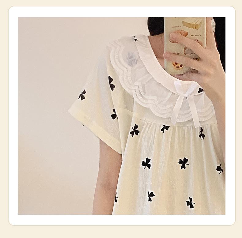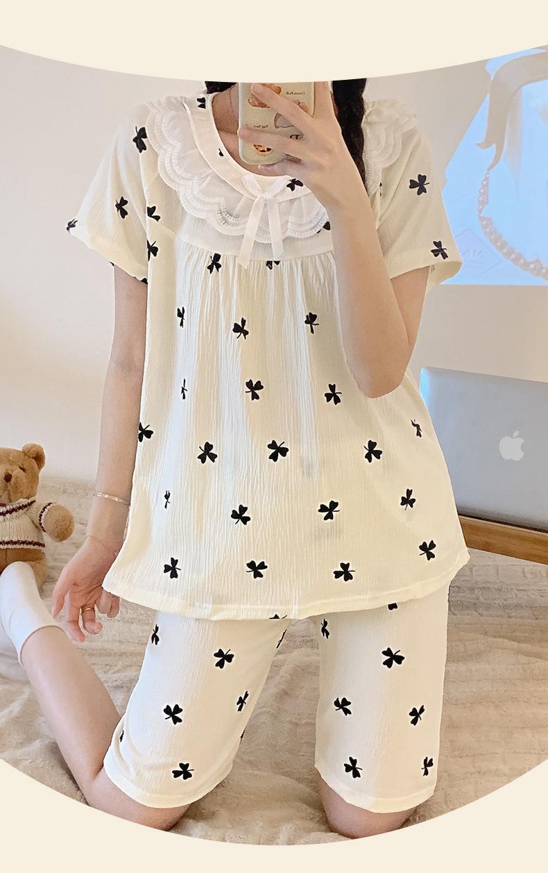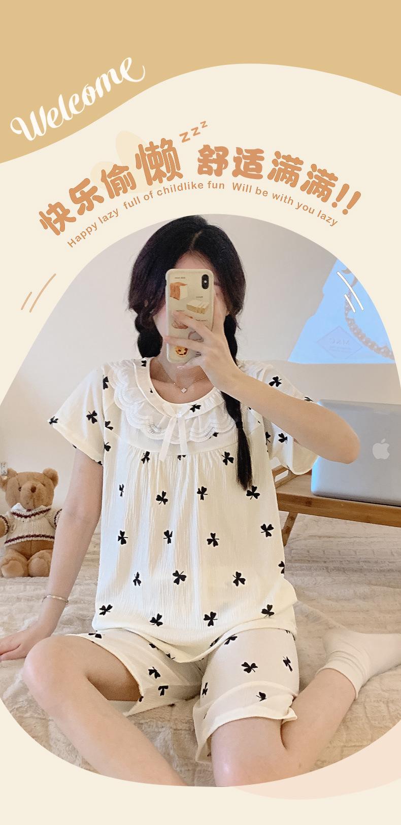 Compra Pijama Dulce Estilo Princesa para Mujer Verano Manga Corta Delgada Espuma Encaje Lindo Traje Ropa de Casa al por mayor en Joom.pro