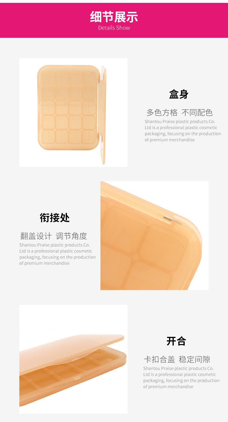 Venta al por mayor de fábrica 20 colores Cuadrado cosmético sombra de ojos caja material de embalaje plástico translúcido simple sombra de ojos multicolor caja vacía
