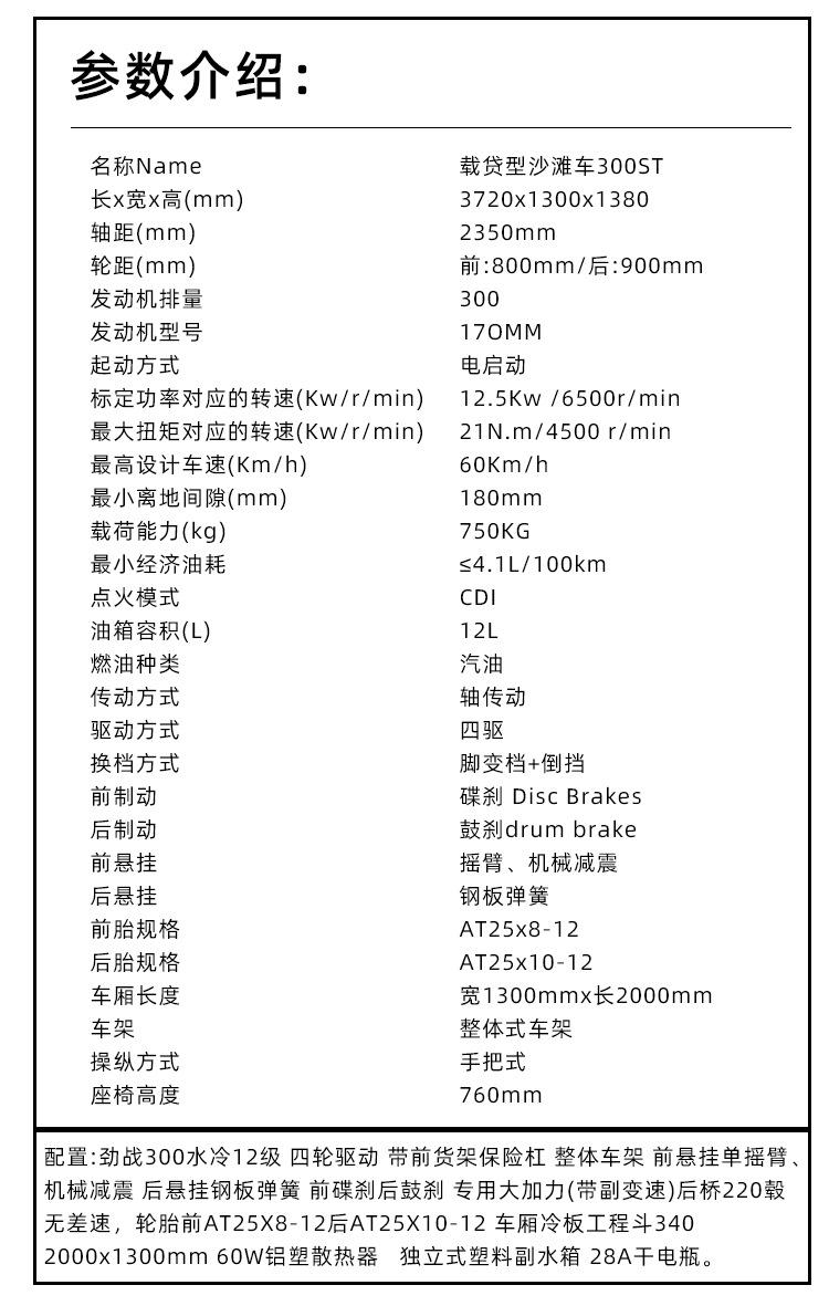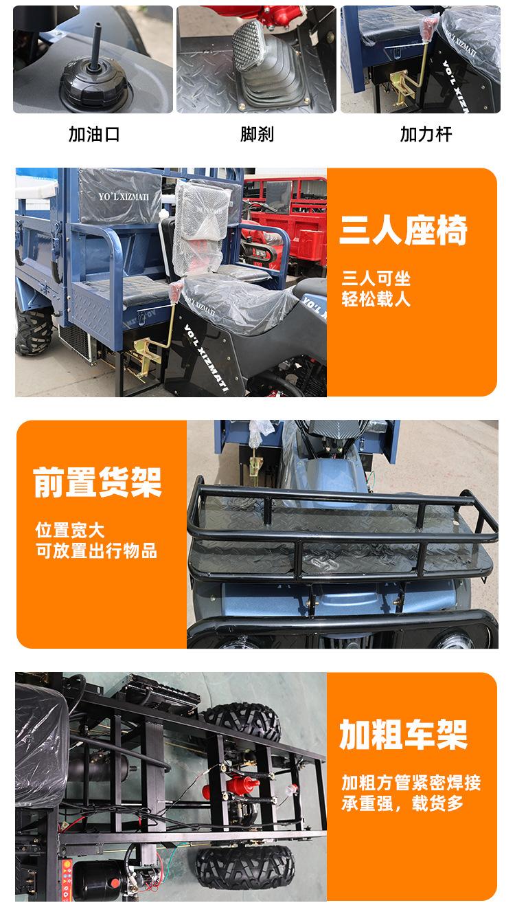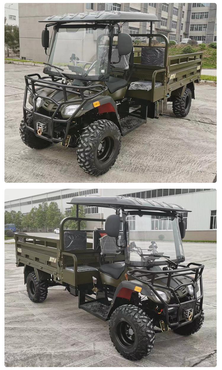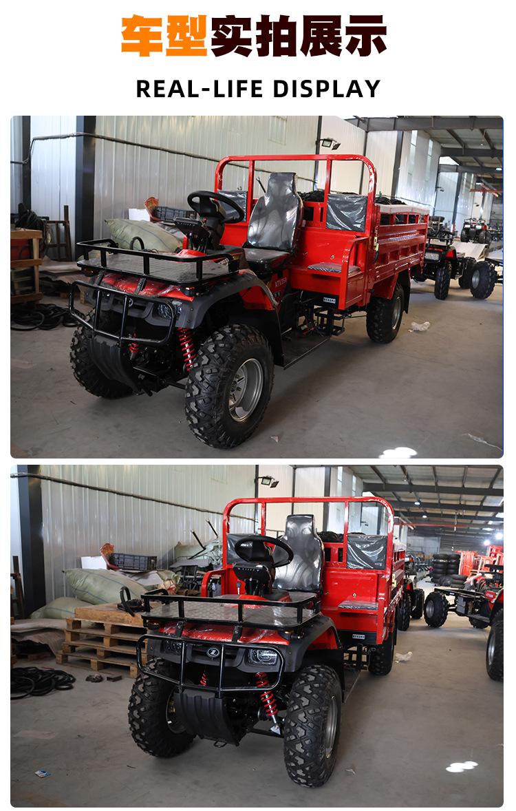 ATV Agrícola Personalizado Biplaza de Alta Potencia con Caja de Carga, Vehículo Todoterreno de 300cc, Motocicleta de Tracción en Dos Ruedas