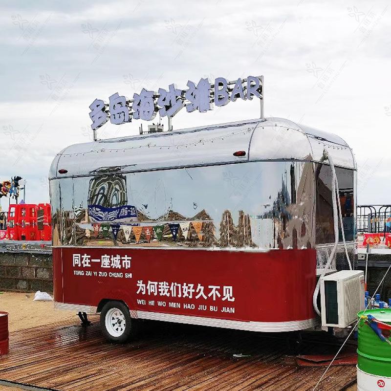 Caravana pequeña remolcable网红 acabado espejo de acero inoxidable RV remolcable campamento de playa autocaravana remolcable