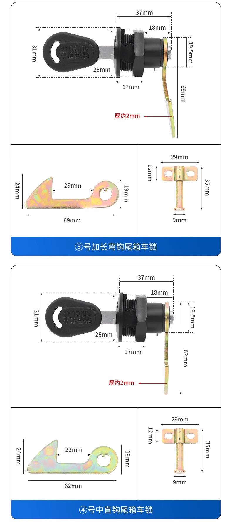 Cerradura de Maletero para Vehículo Eléctrico Universal Cerradura de Maletero para Coche de Batería Cerradura de Caja de Herramientas de Motocicleta Cilindro de Cerradura Hebilla Fija Accesorios