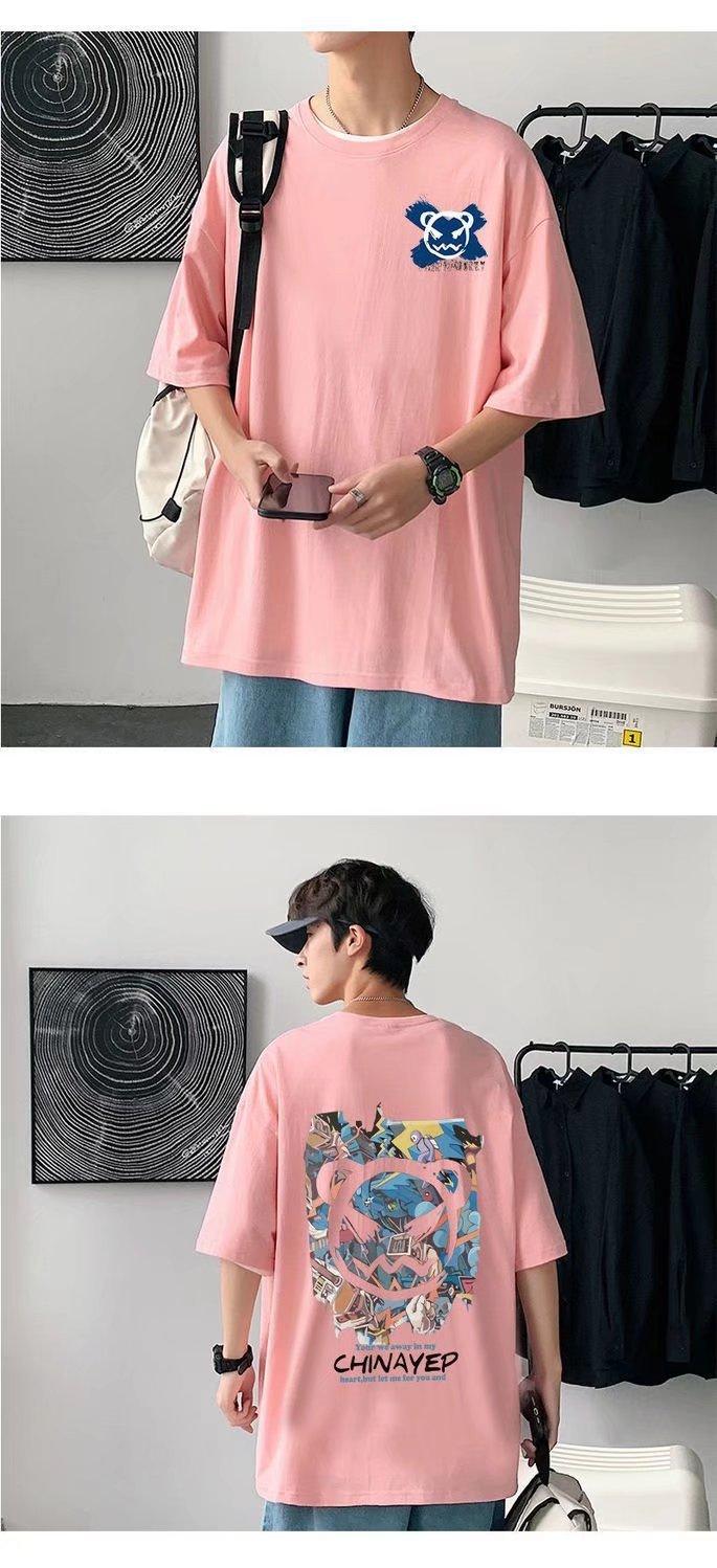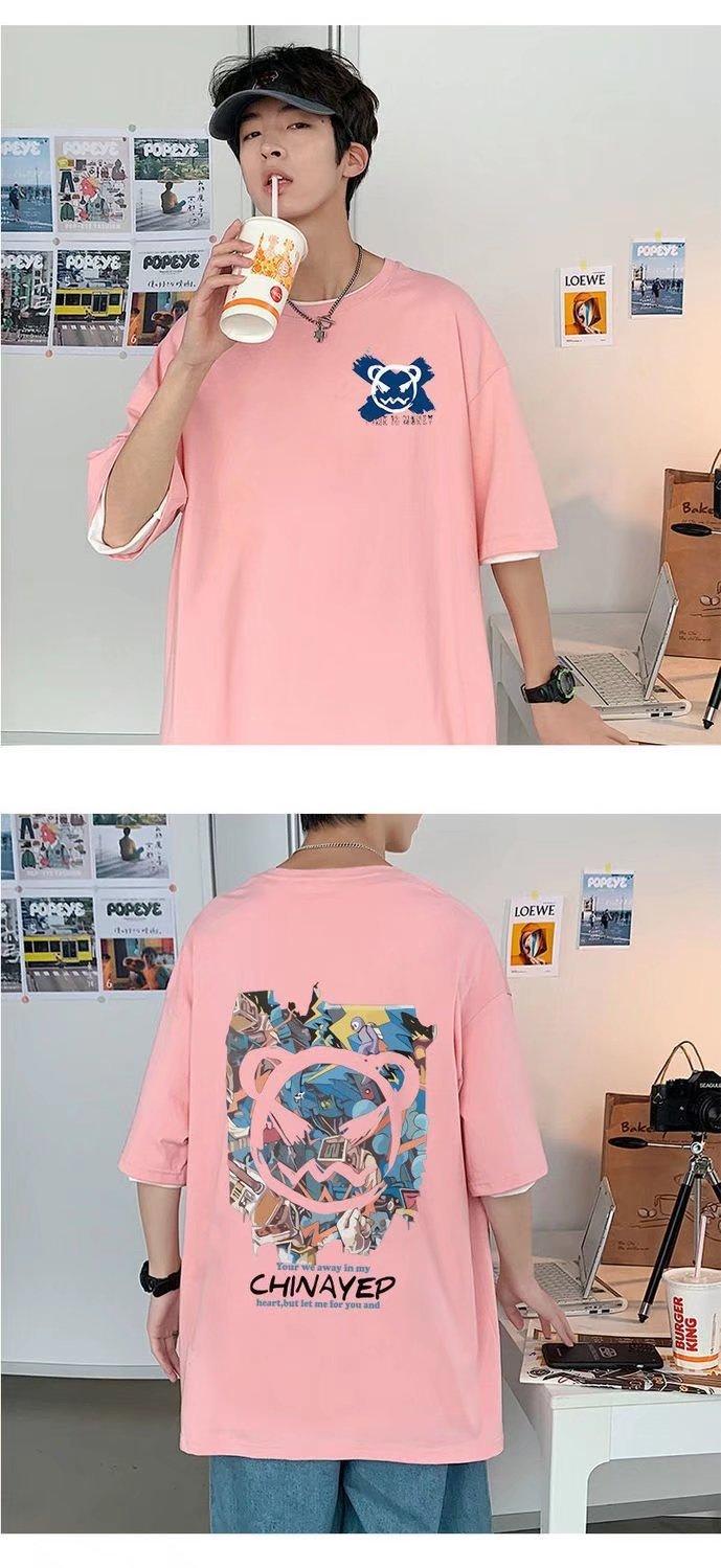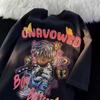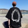 Camiseta de Manga Corta Graffiti de Demonio Estilo Verano Hong Kong para Hombre ins Trendy Suelta Pareja Manga Corta Camiseta Top Casual Ropa Delgada