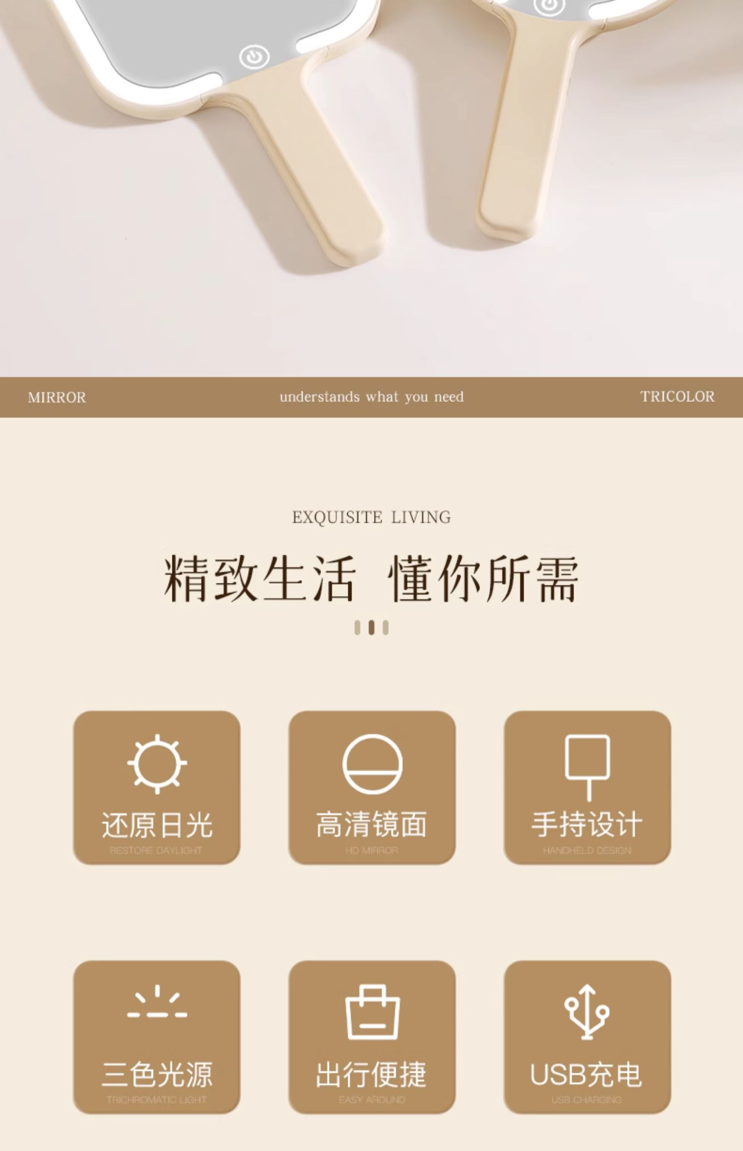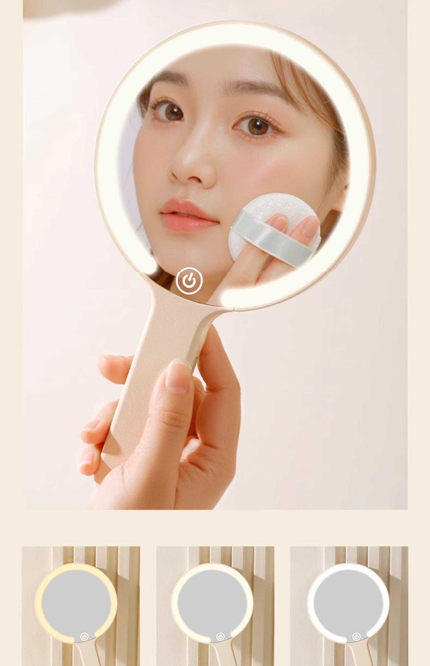 Espejo de Maquillaje de Mano al por Mayor Portátil Dormitorio de Estudiantes LED Femenino Espejo de Maquillaje de Alta Calidad con Luz Hogar Pequeño Escritorio