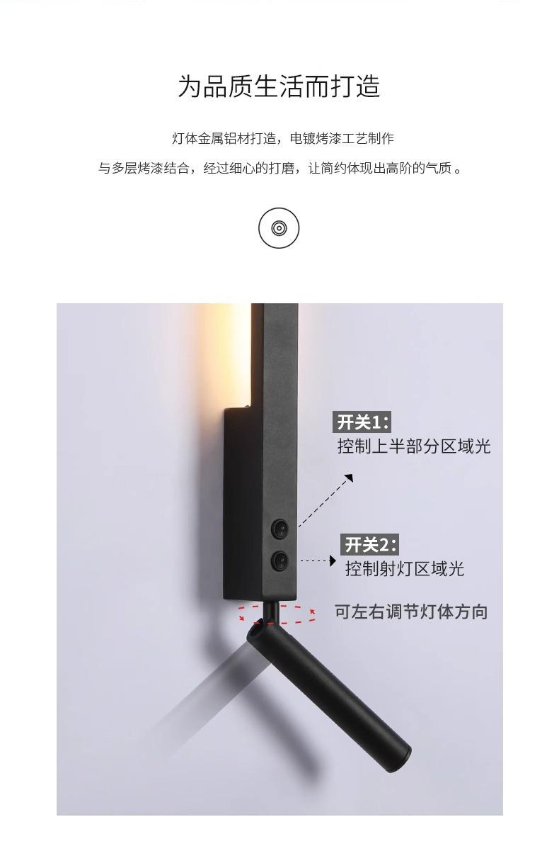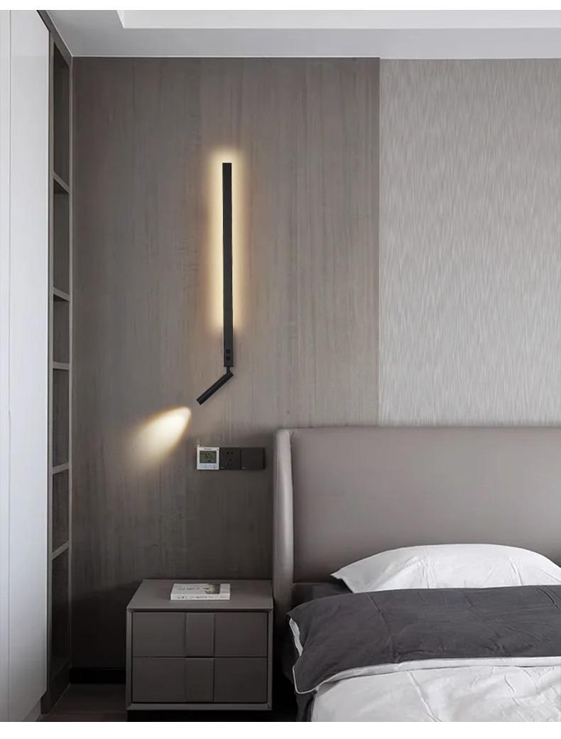 Foco Giratorio Minimalista Creativo Luz de Línea Sala de Estar Pared de Fondo Pasillo Mesita de Noche con Interruptor Tira Larga Personalidad Lámpara de Pared