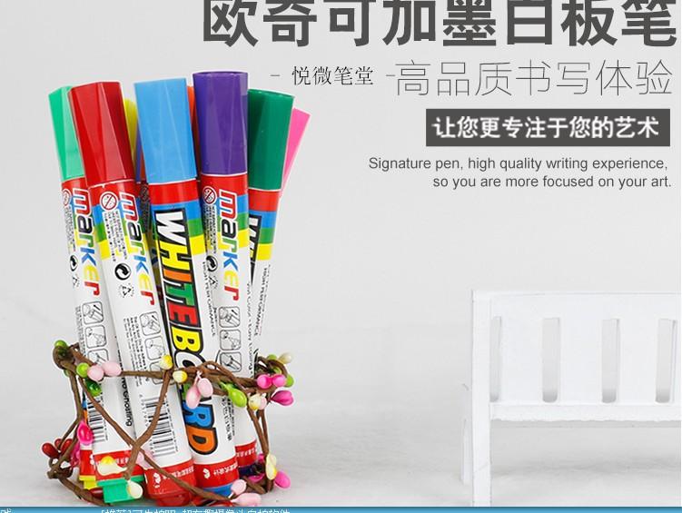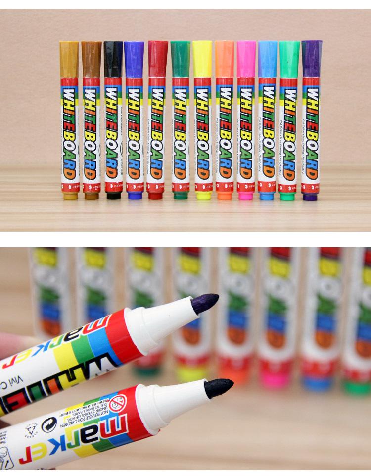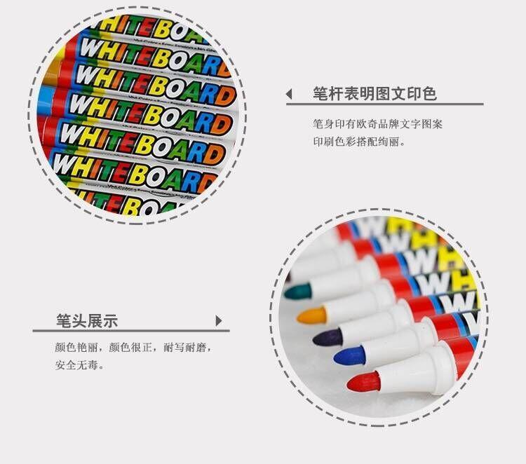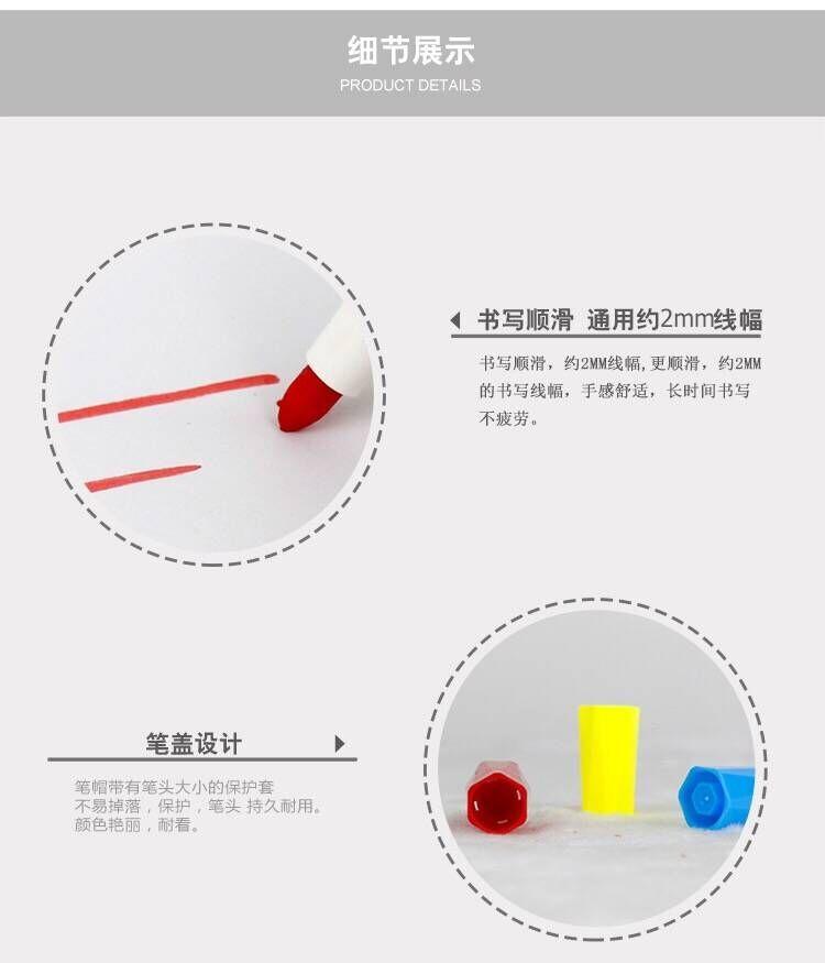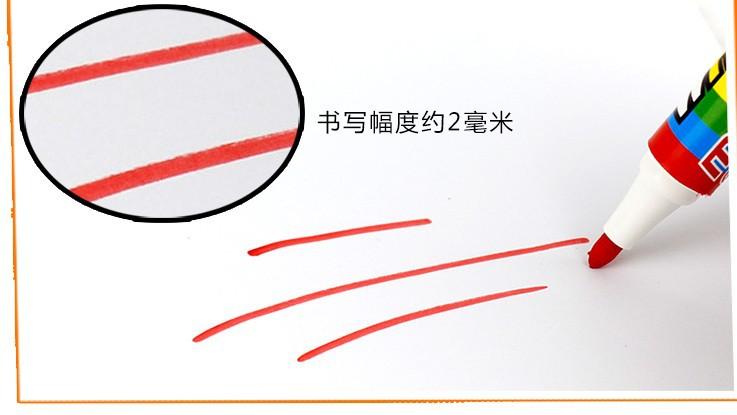 Características: Puede escribir sobre diferentes tipos de superficies de materiales (por ejemplo: pizarrón blanco, vidrio)、porcelana, etc.), fácil de borrar, no deja rastro