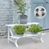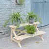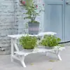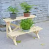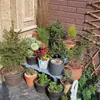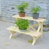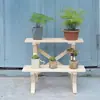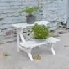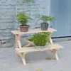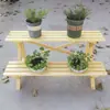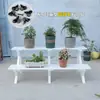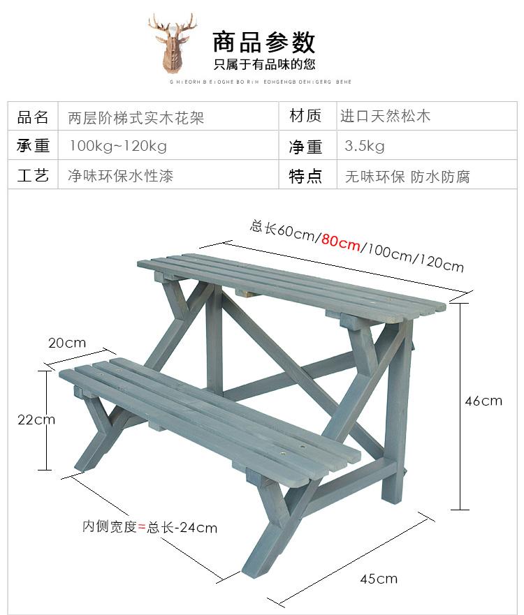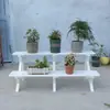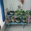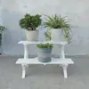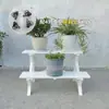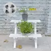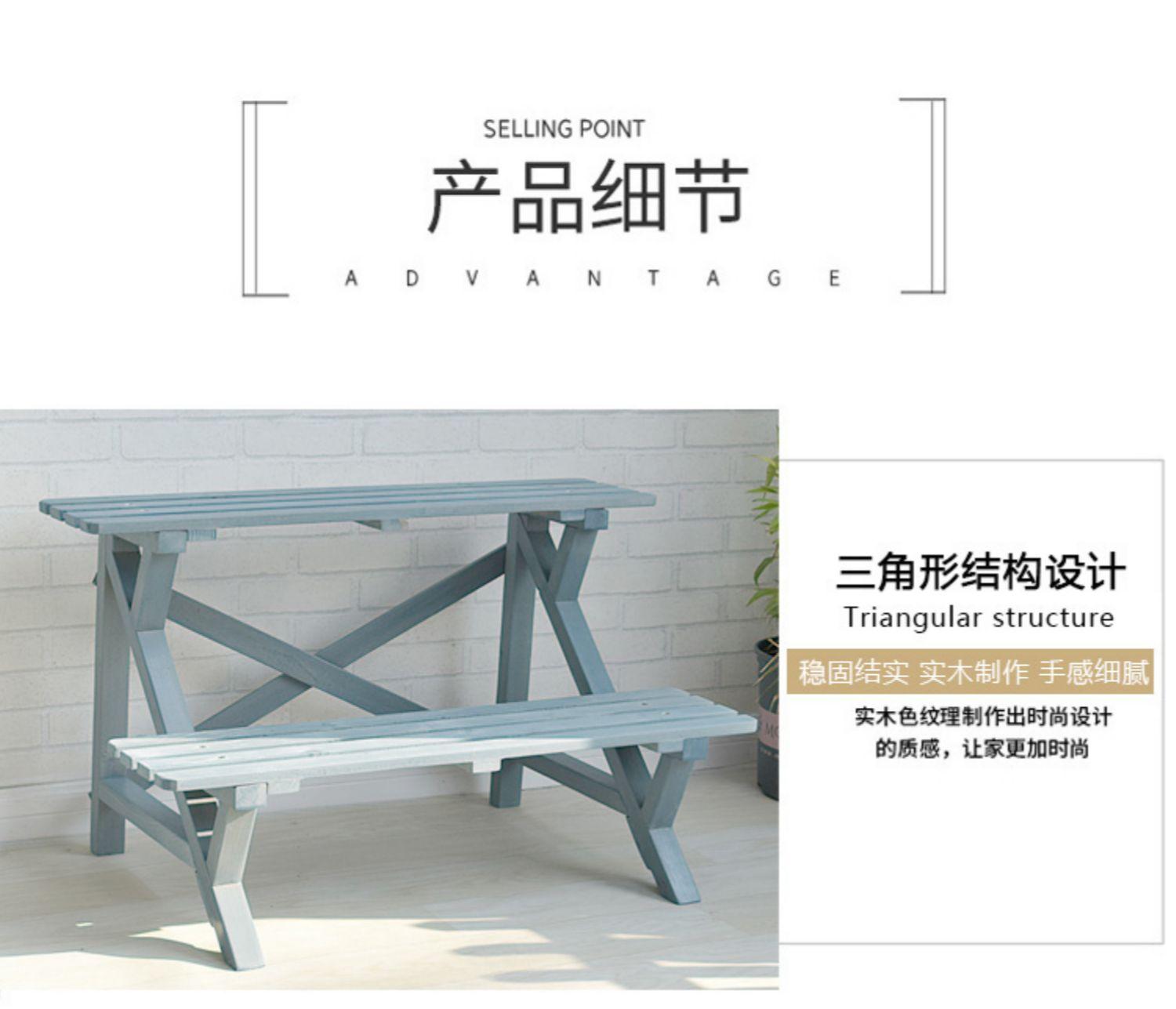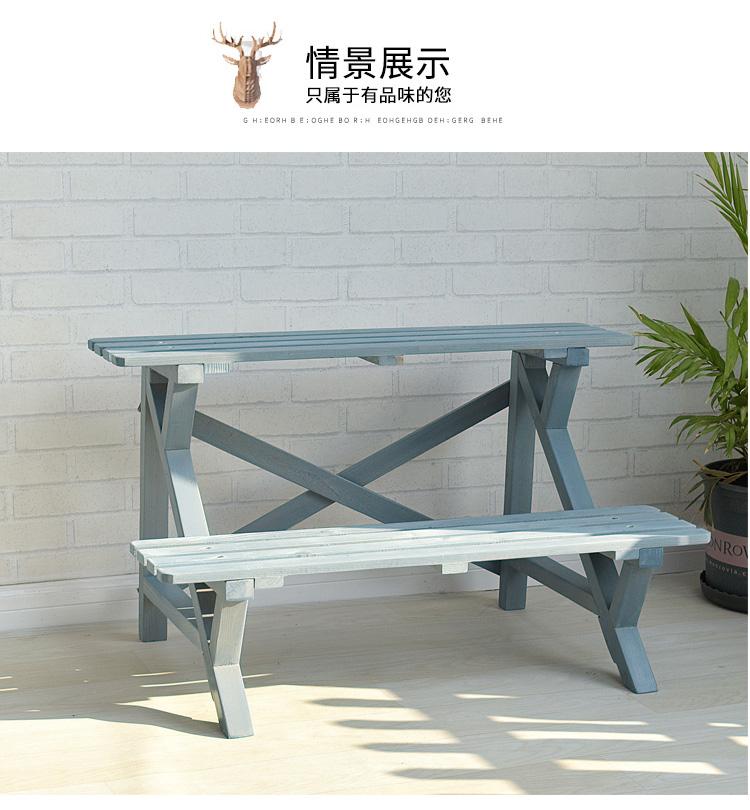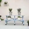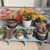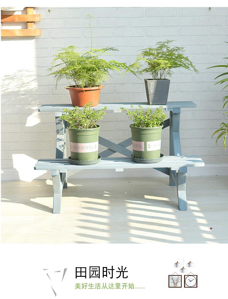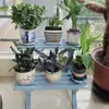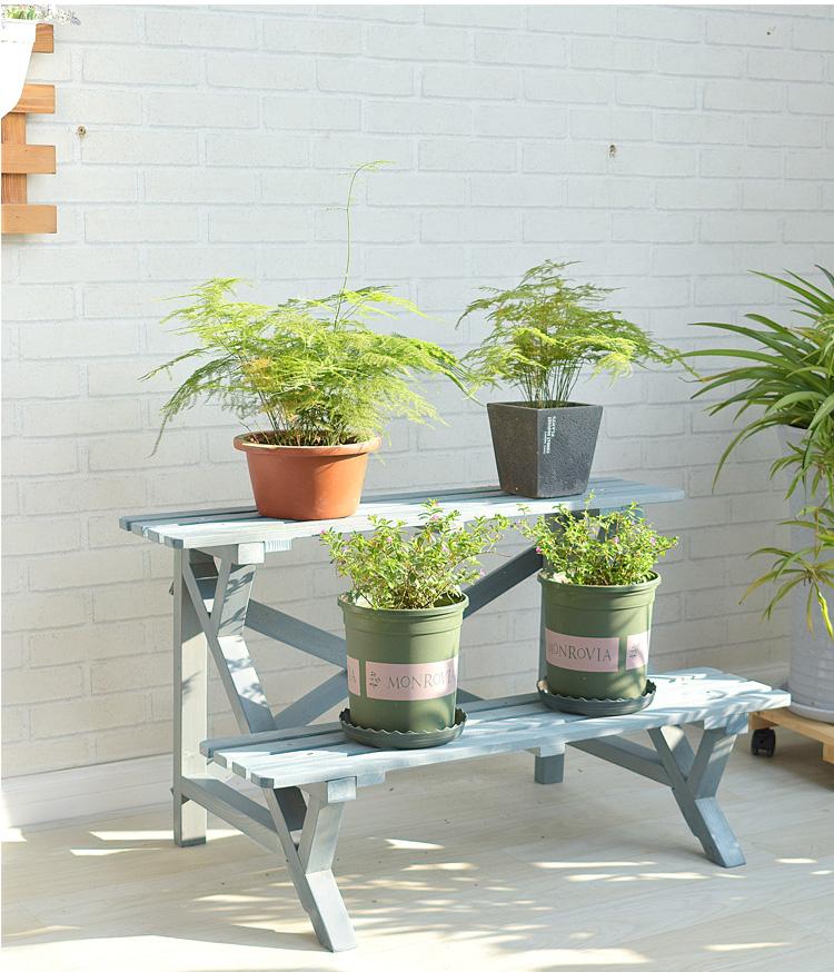 Soporte para Flores de Madera Maciza Azul Retro de Dos Pisos Escalonado al por Mayor Balcón Patio Exterior Impermeable y Anticorrosivo Maceta de Pie