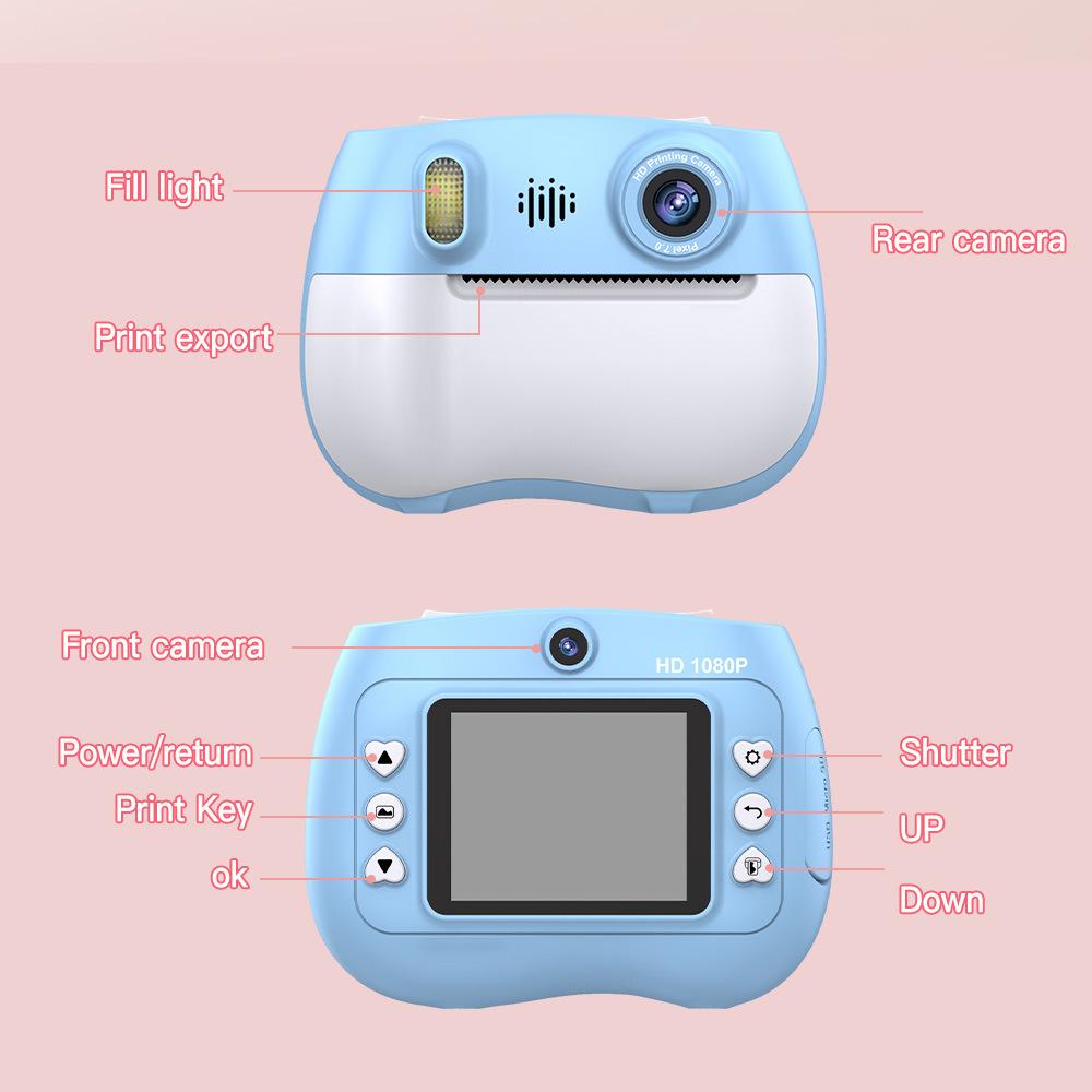 Doble lente, función de grabación, fotografía con un solo botón, grabación con un solo botón, píxeles de alta definición, impresión con un solo botón, imprimir fotos, 3 grados de calidad de impresión, juegos, música, escena nocturna, MP3