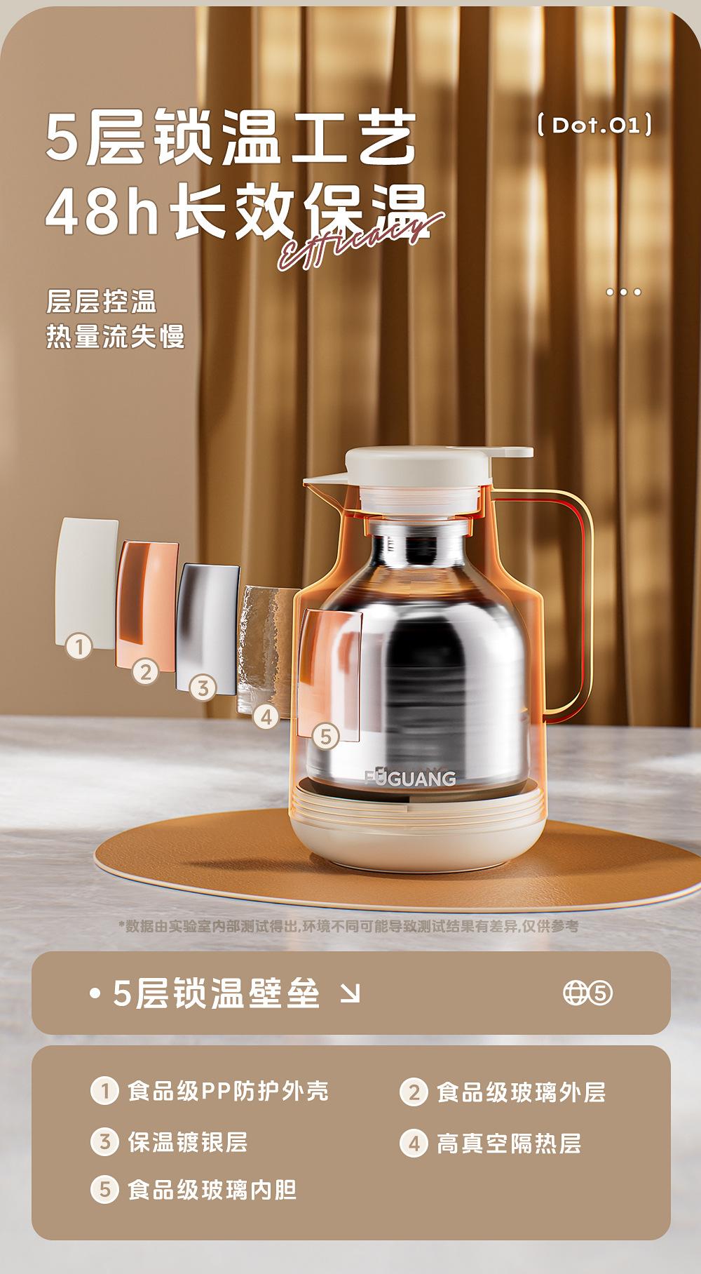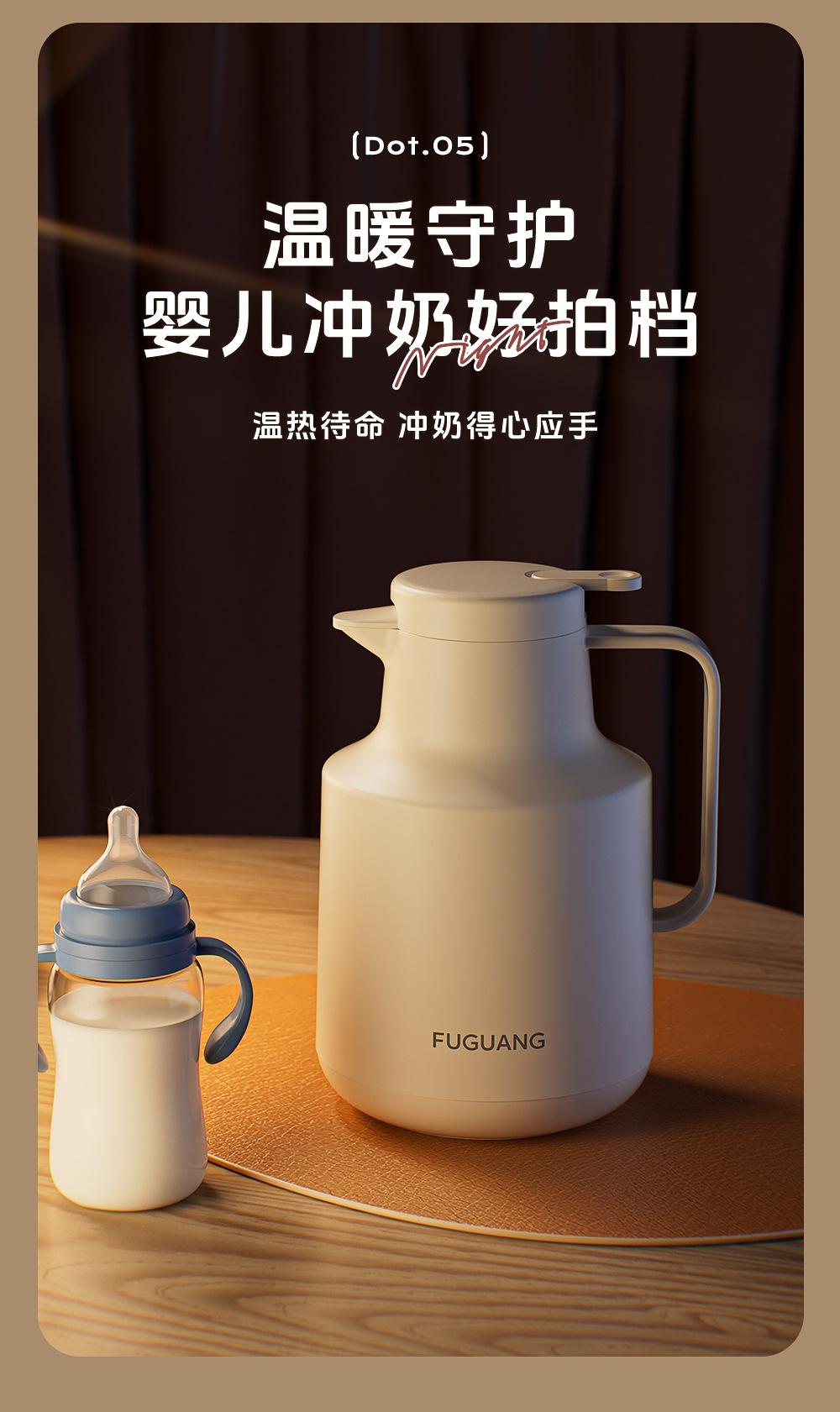 Hervidor Aislado Fuguang Gran Capacidad Botella de Agua Caliente Comercial Forro de Vidrio Aislado Jarra de Agua Aislada de Escritorio para el Hogar Botella Aislada al por Mayor