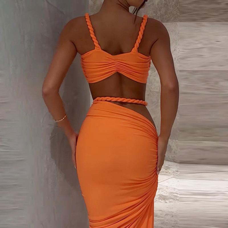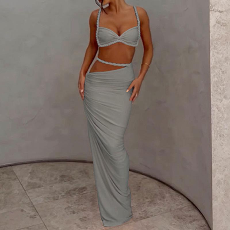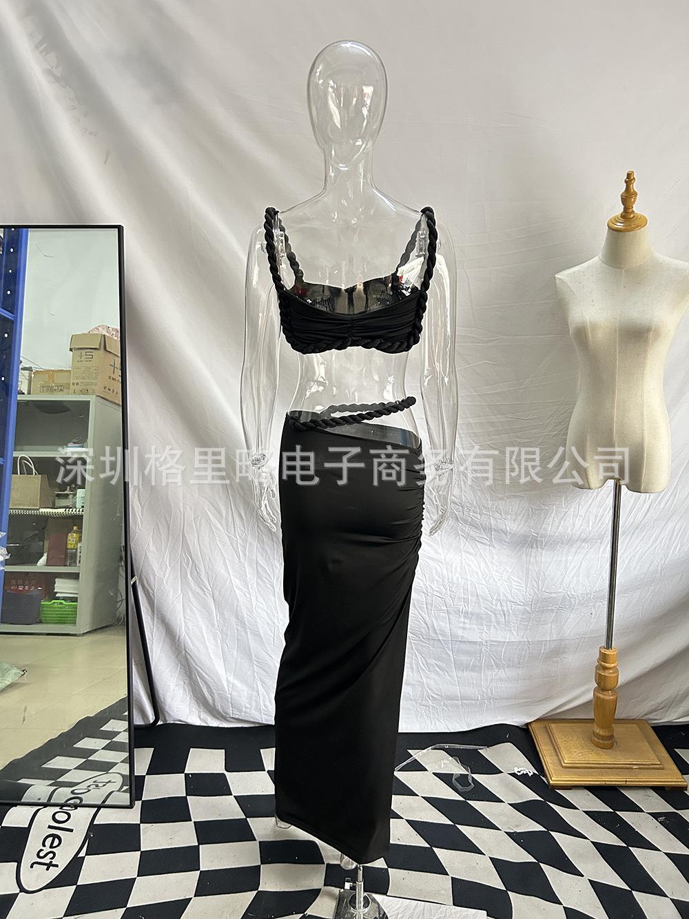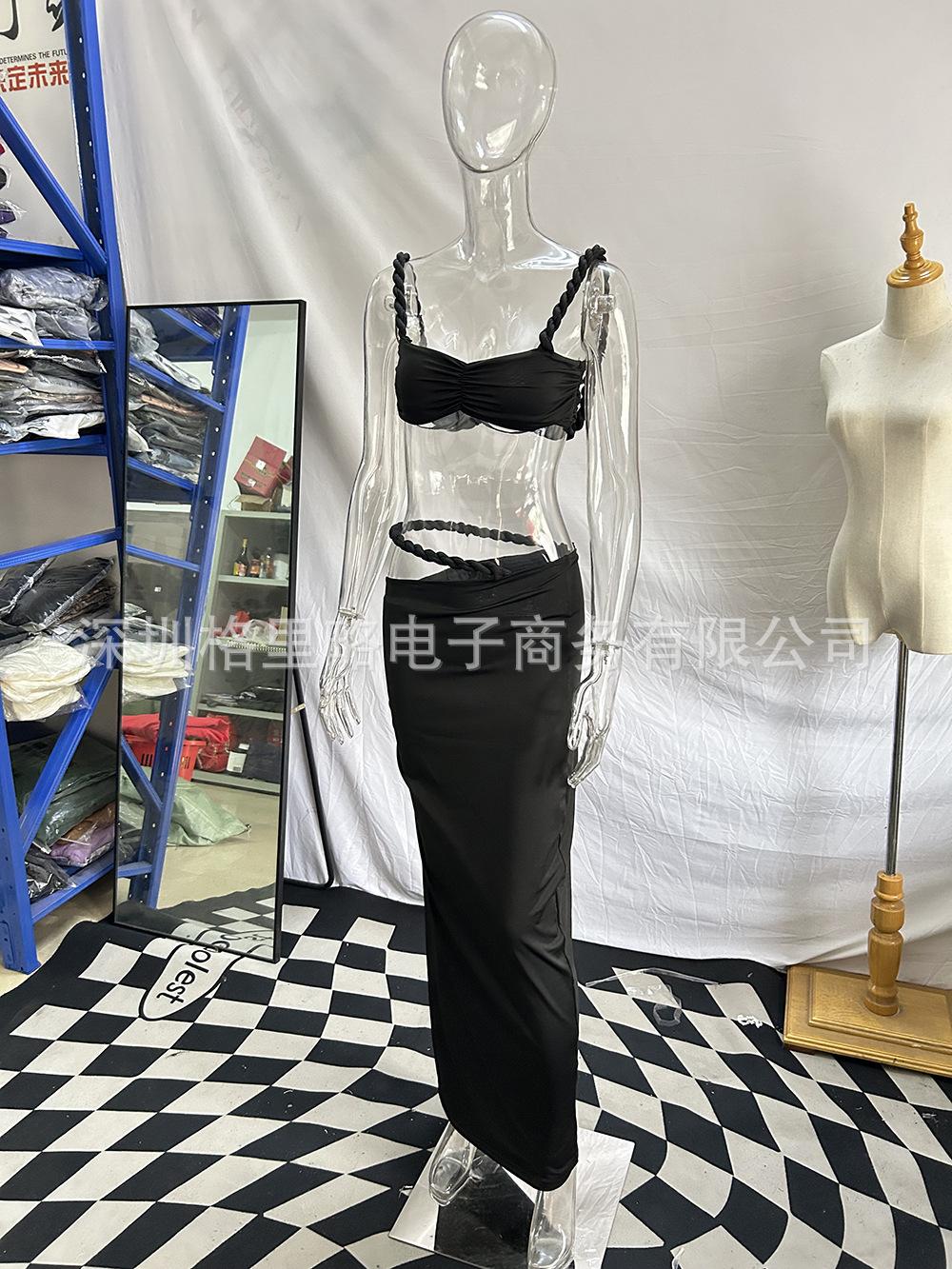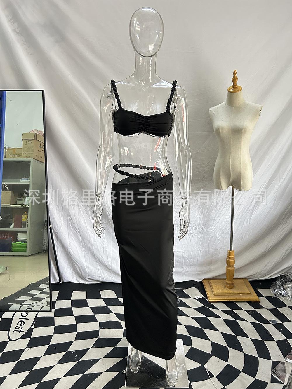 Traje de falda camisola pequeña sin espalda de color sólido nuevo sexy de primavera y verano 2025 transfronterizo europeo y americano