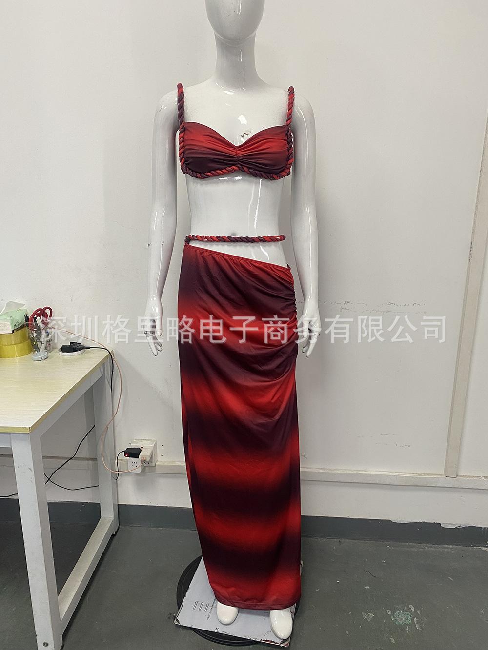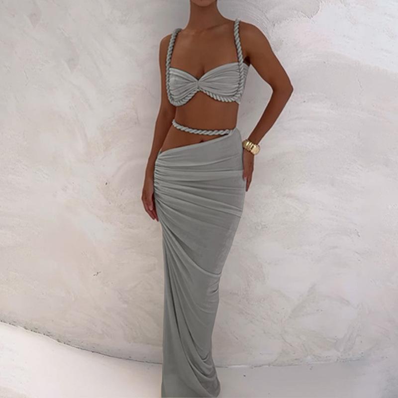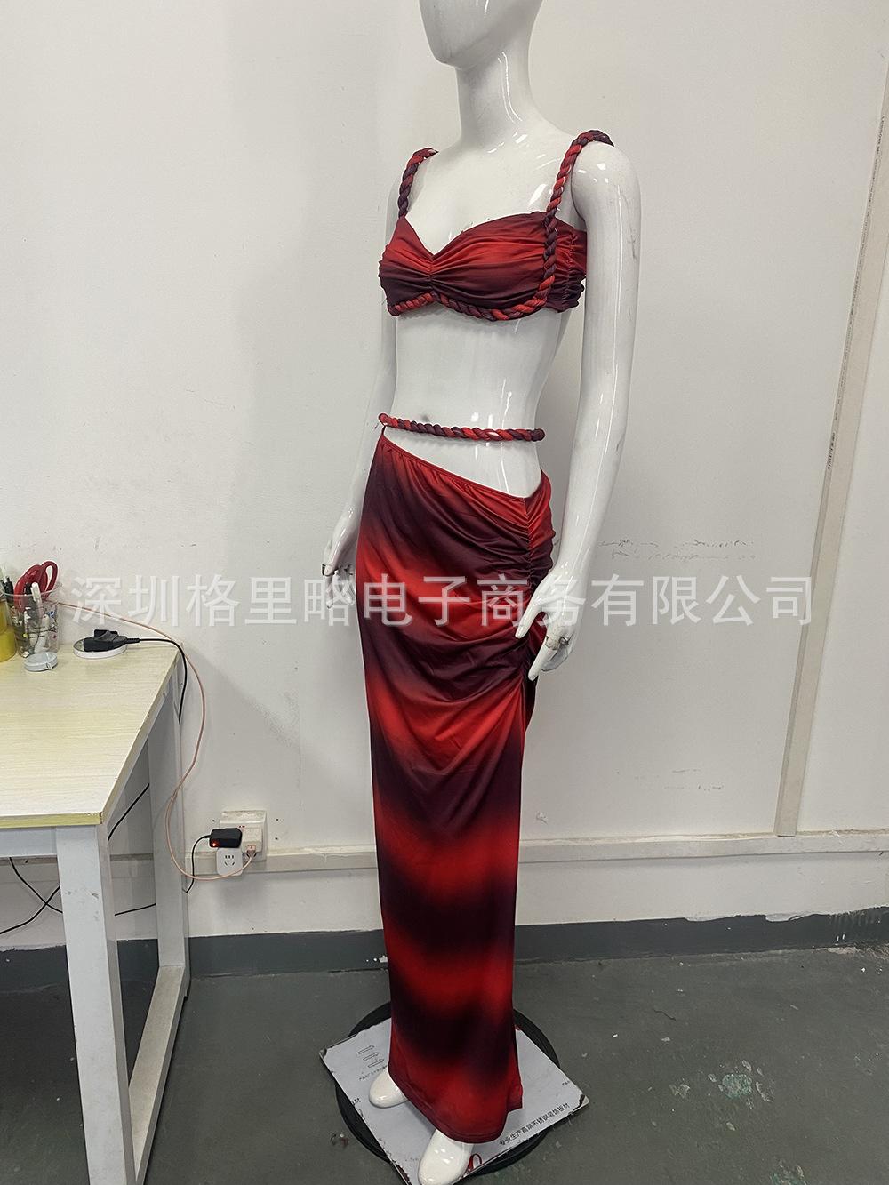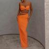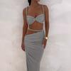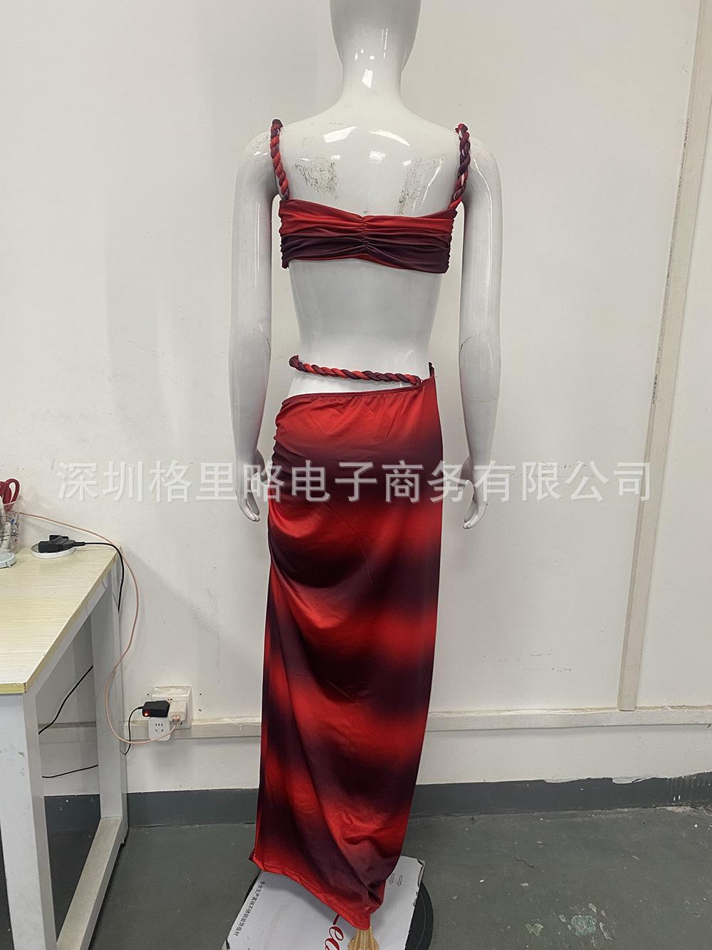 Traje de falda camisola pequeña sin espalda de color sólido nuevo sexy de primavera y verano 2025 transfronterizo europeo y americano