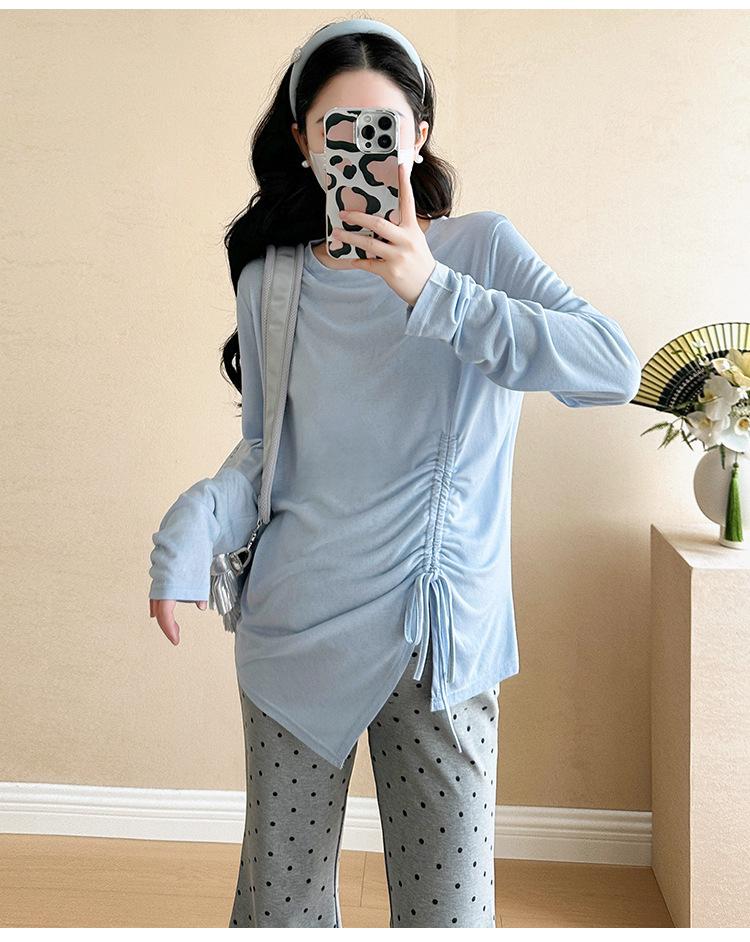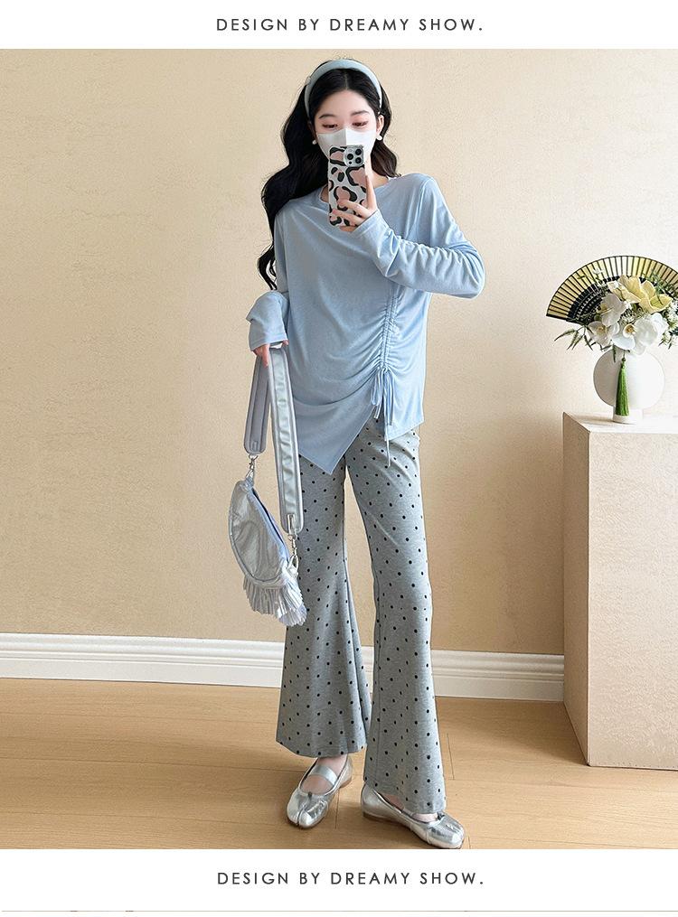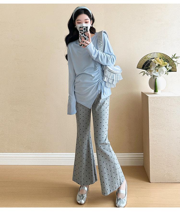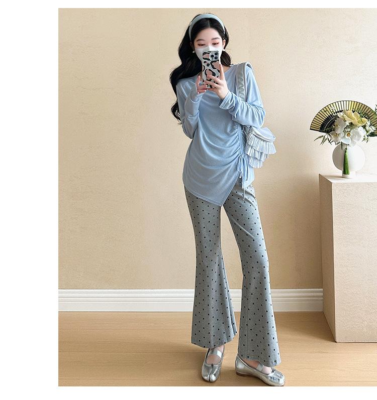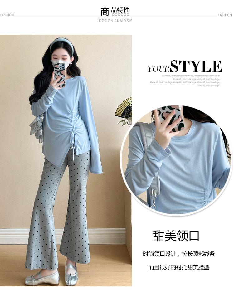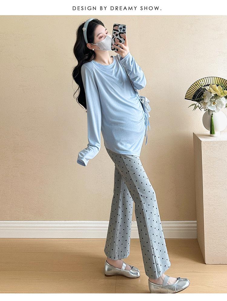 Punto 2025 Otoño Nuevo Camiseta Elástica Maternidad Capa Base Maternidad Conjunto de Dos Piezas