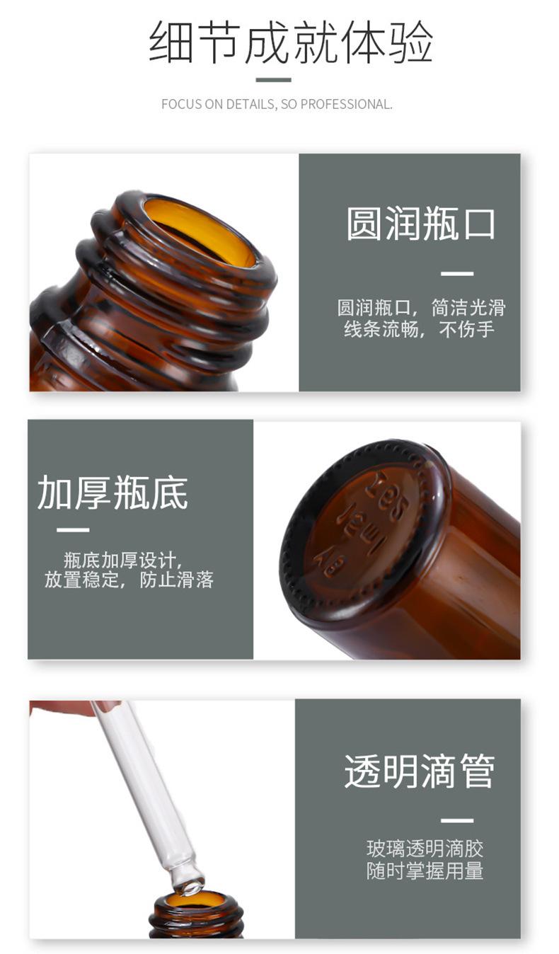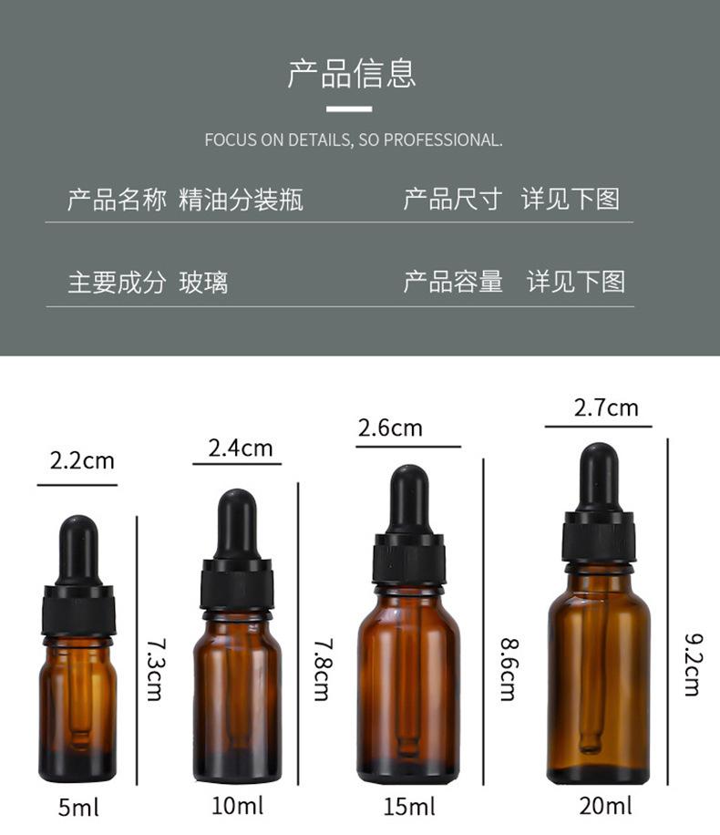 Botella de Aceite Esencial Marrón de 5 ml Botella con Cuentagotas de Vidrio de 10 ml Botella de Perfume de 20 ml Botella de 50 ml Botella de Vidrio de 30 ml