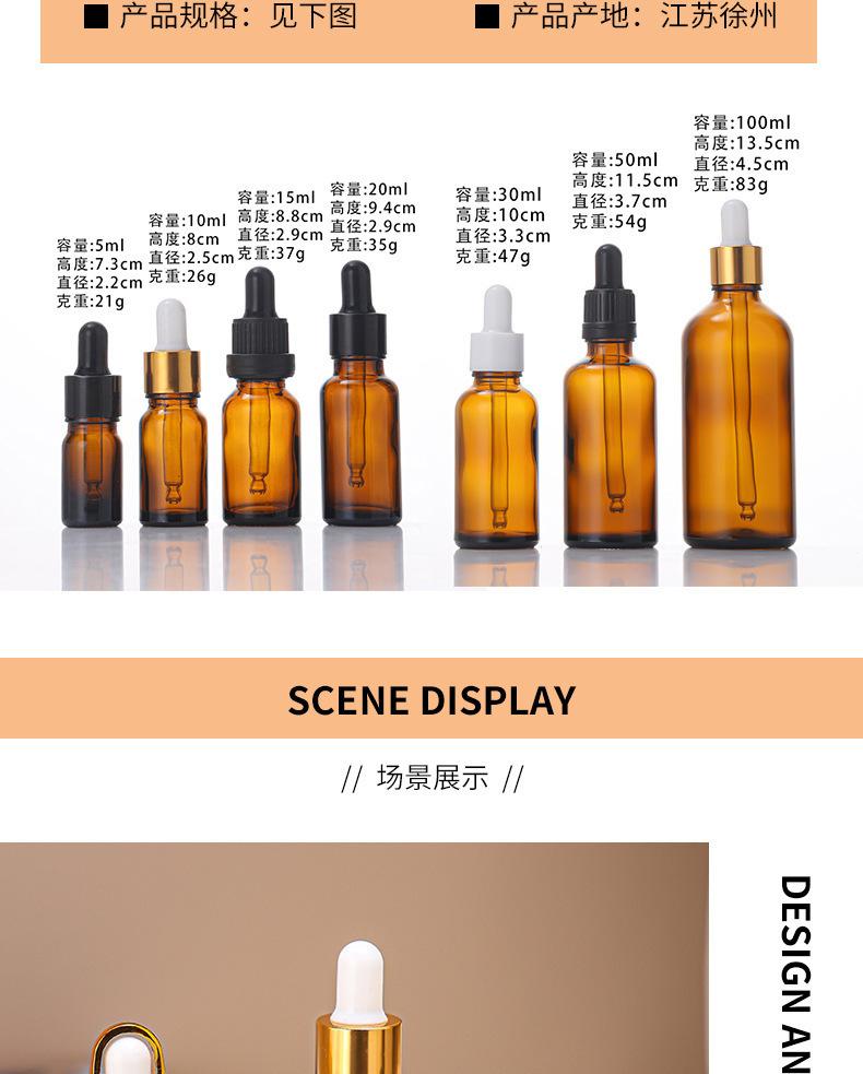 5ml (765 pieces/box); white ring + white plastic tip dropper + brown bottle; glass