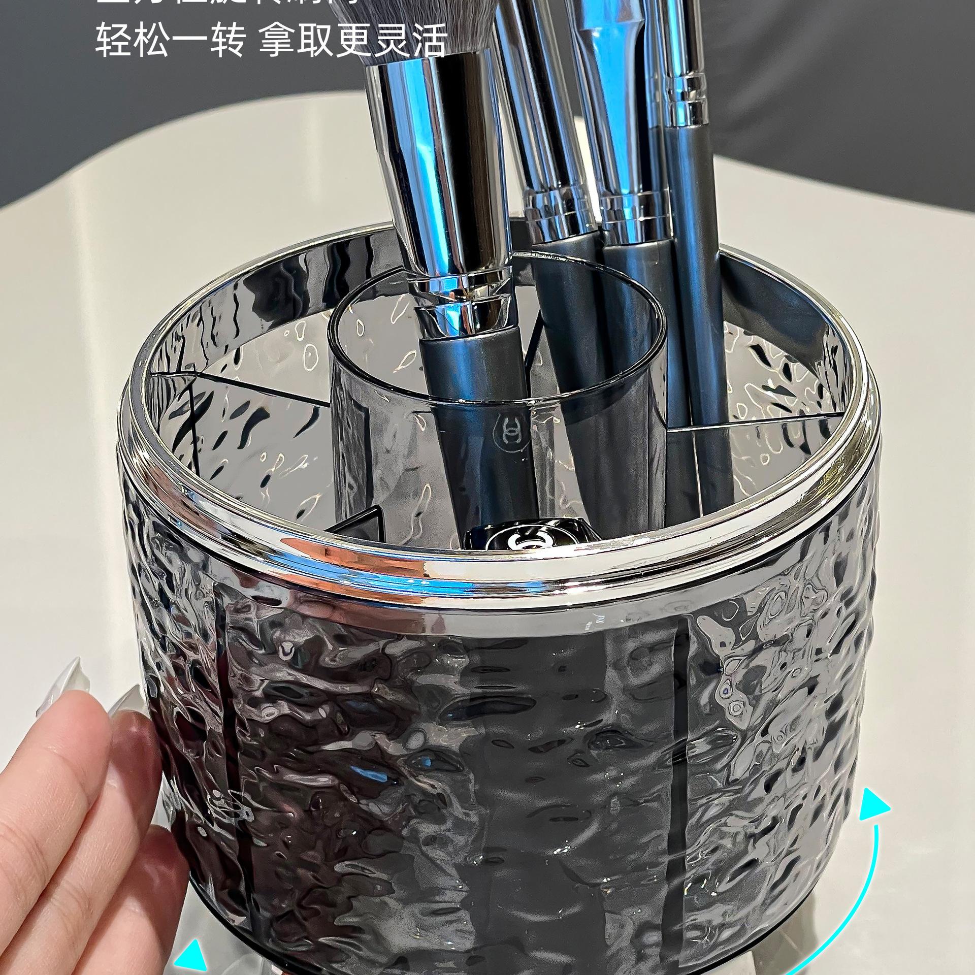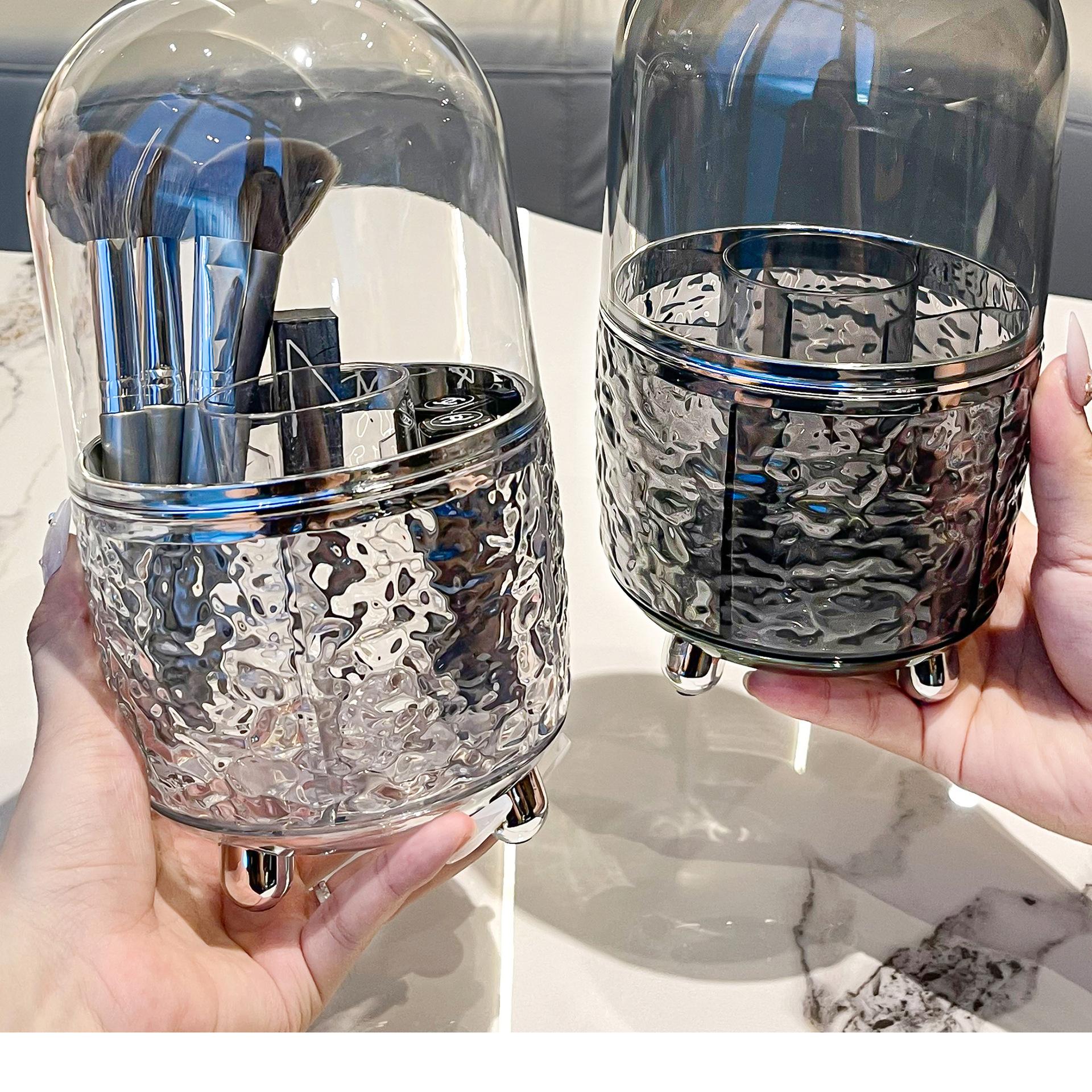 Water ripple dustproof rotating storage tube—transparent gray silver