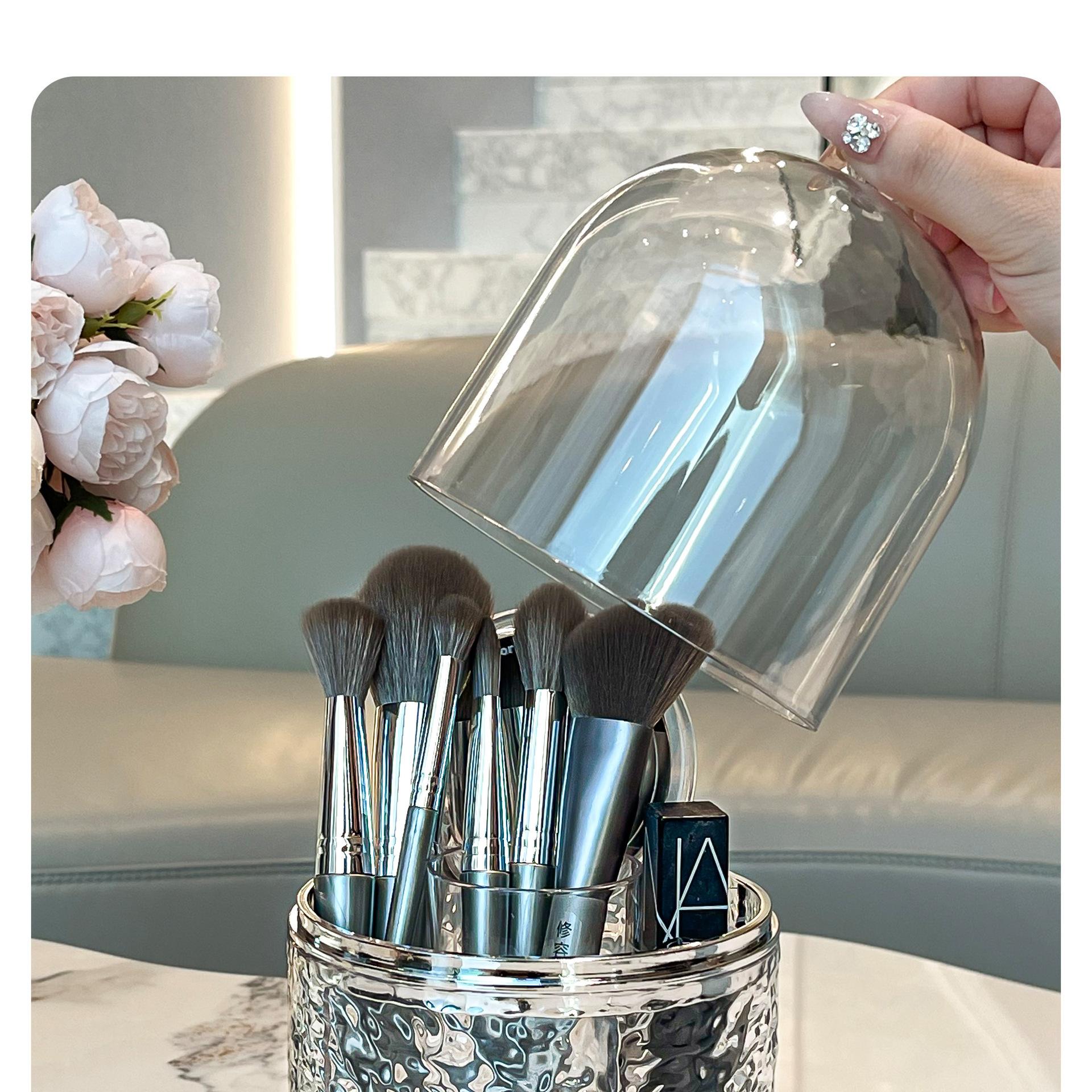 Tubo de Almacenamiento Transparente para Brochas de Maquillaje a Prueba de Polvo Giratorio de Escritorio Caja de Almacenamiento de Cosméticos Estante para Almacenamiento de Lápices Labiales de Tocador Soporte para Bolígrafos
