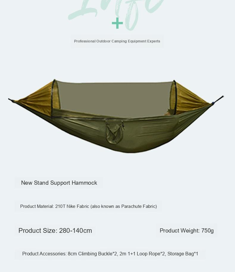 color: bloque de color ¿Hay algún soporte disponible?: denegar Material de la superficie de la hamaca: NAILON Carga máxima: 300 kilos peso: 750g Presupuesto (largo * ancho): 280 * 140cm negro naranja (malla negra), 280 * 140cm verde militar camello (malla verde militar), 280 * 140cm patrón de ángel (malla negra), 260 * 140cm negro naranja (malla negra), 260 * 140cm verde militar camello (malla negra) (centímetro) PERSONALIZABLE: Acepta personalización