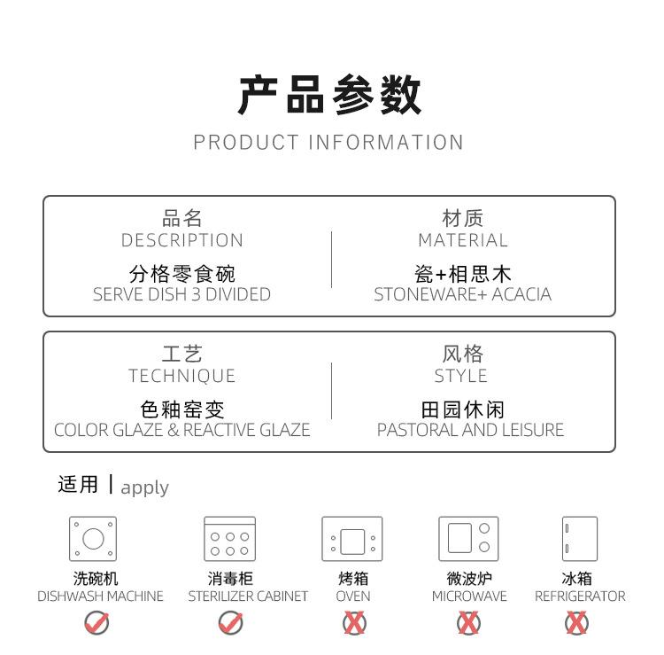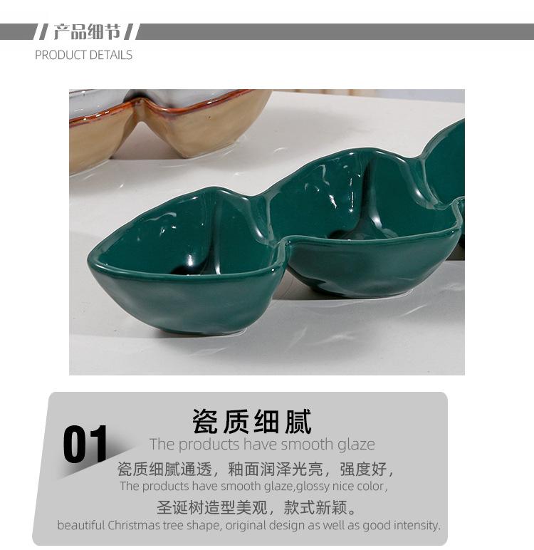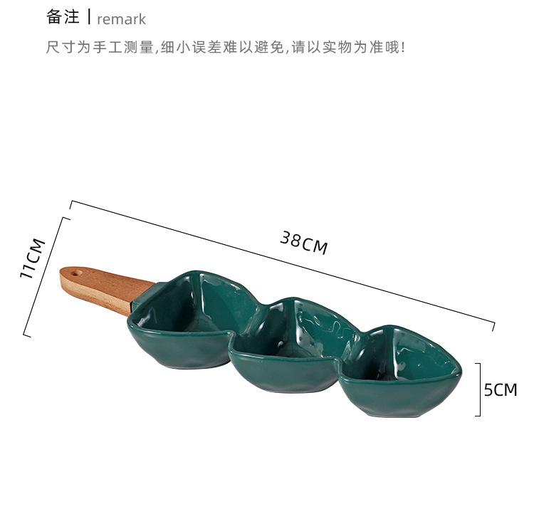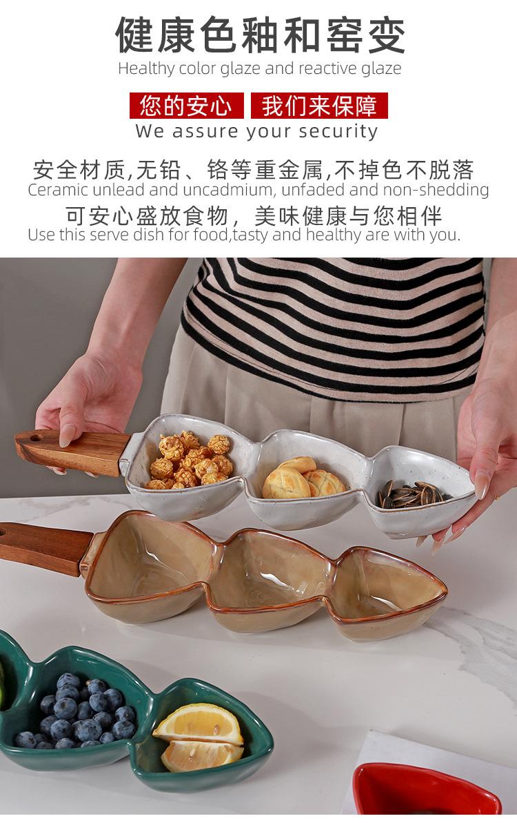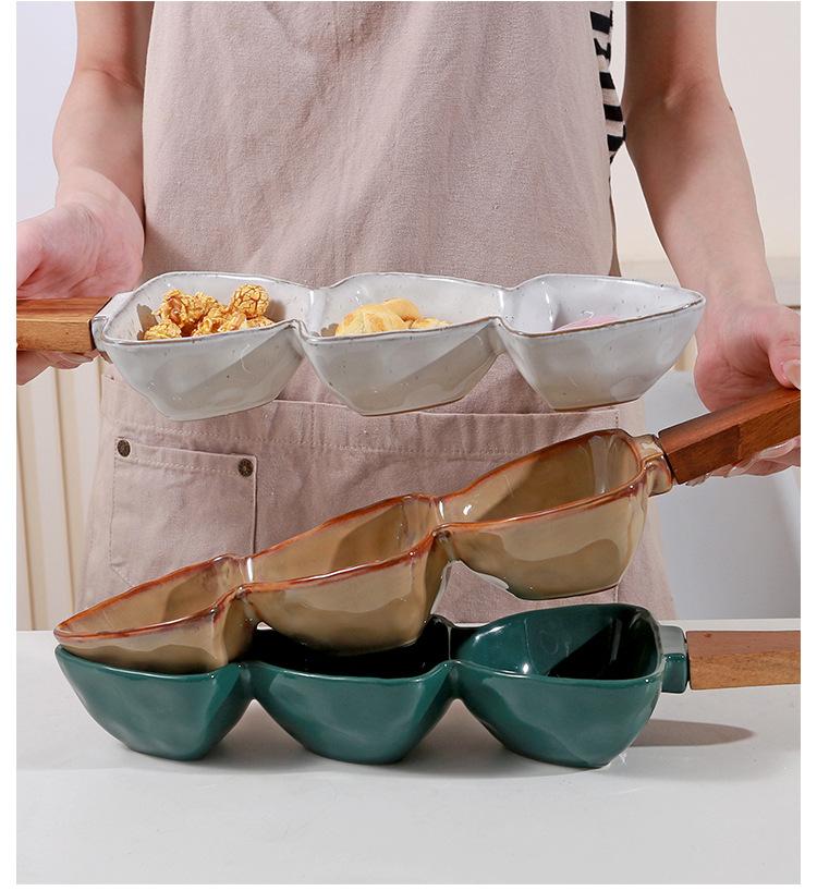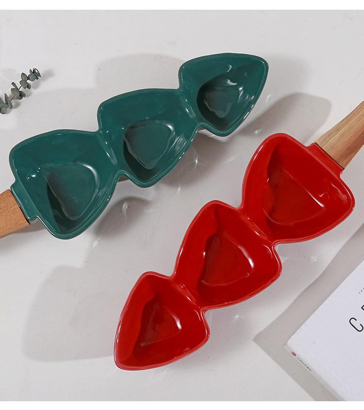 Nuevo Plato Dividido de Cerámica Creativo para Uso Doméstico con Asa de Madera Plato de Cerámica para Frutos Secos Productos de Cerámica Navideños