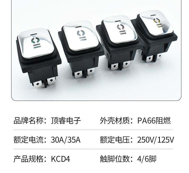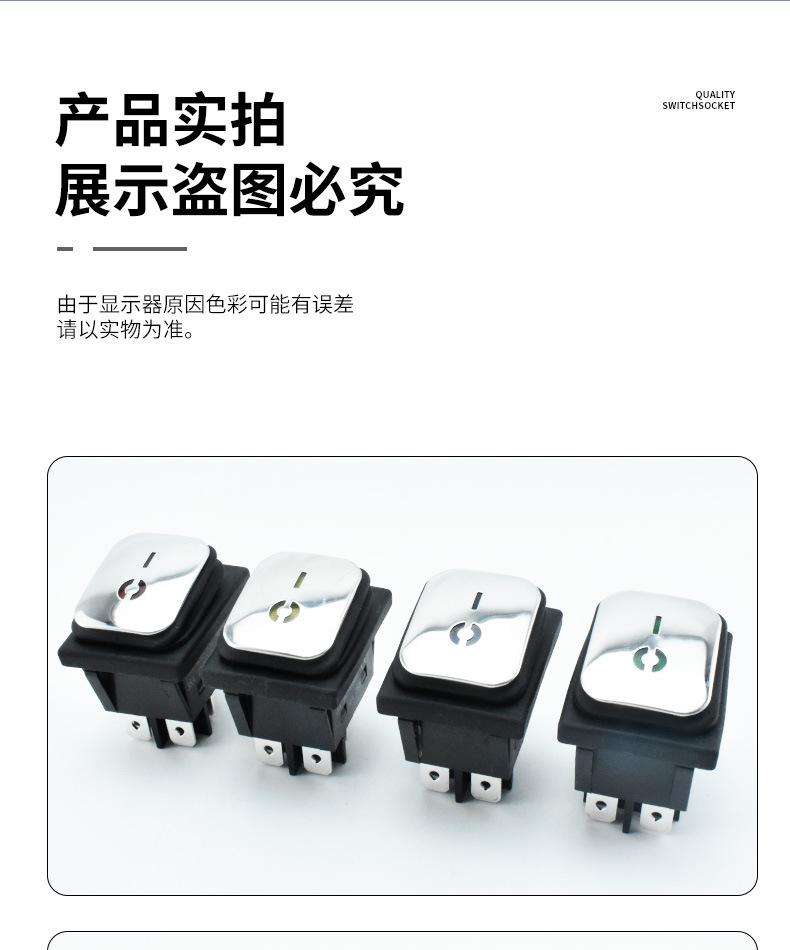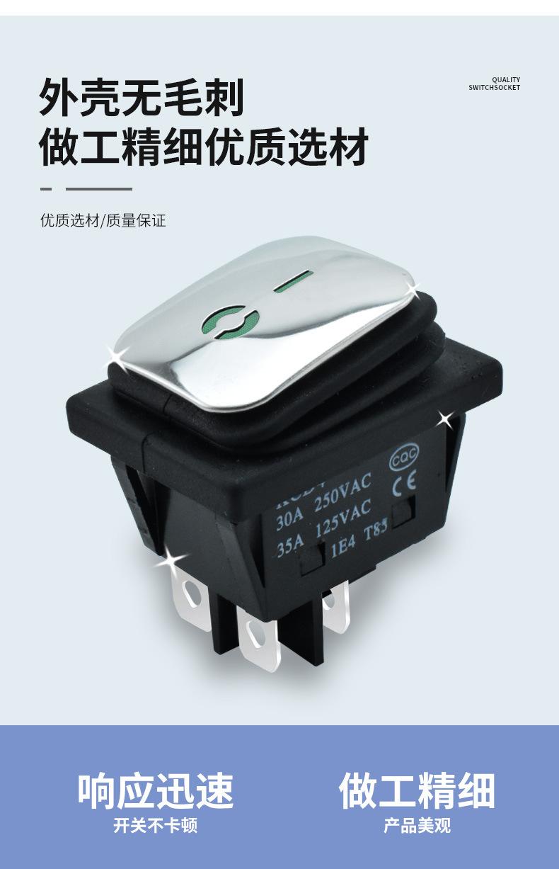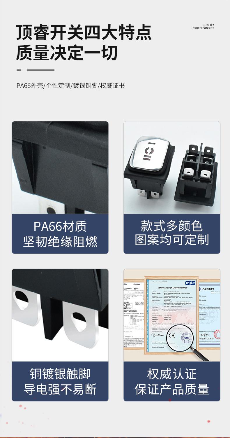 Introducción al interruptor de barco: El interruptor de barco también se denomina interruptor de onda. Su estructura es la misma que la del interruptor de botón, excepto que la manija del botón tiene forma de barco. El interruptor de barco se utiliza a menudo como interruptor de encendido de equipos electrónicos. Sus contactos se dividen en unipolares (de una vía) y bipolares (de dos vías). Algunos interruptores requieren luces indicadoras.Rango de aplicación: Los interruptores basculantes se utilizan en dispensadores de agua, cintas de correr, altavoces de computadora, automóviles a batería, motocicletas, televisores de plasma, cafeteras, regletas de enchufes, máquinas de masaje, etc. Se utilizan principalmente en electrodomésticos.El método de prueba para verificar la vida útil del interruptor basculante consiste principalmente en comprobar el número de aperturas y cierres hasta que se dañe. Si no necesita hacerlo manualmente, puede usar un pequeño motor para accionar el interruptor basculante de apertura y cierre y usar un contador para registrar el número de veces. Este interruptor requiere certificación de seguridad. Si el producto se vende en el país, utiliza CQC. Si se vende en el extranjero, depende del país de destino, como UL en Estados Unidos, CUL en Canadá y VDE, ENEC, TÜV y otras certificaciones de seguridad en países europeos.Clasificación del interruptor basculante:1. SPST: 1 contacto móvil y 1 contacto estático. Solo 1 canal.2. Unipolar de doble tiro: 1 contacto móvil y 2 contactos estacionarios (los contactos estacionarios de ambos lados se pueden conectar por separado)3. Bipolar de un solo tiro, 2 contactos móviles y 2 contactos fijos, con 2 canales4. Bipolar de dos vías, 2 contactos móviles y 4 contactos fijos, con 4 canales (los 2 contactos fijos de ambos lados se pueden conectar por separado)Problema de falla del interruptor basculante:Hay una lámina metálica dentro del interruptor con forma de barco, con un punto de apoyo de resorte en el centro. El resorte está desplazado y el soporte de plástico está desgastado y deformado, por lo que el interruptor no es flexible. Puede desconectar la alimentación y revisarlo. Si las piezas de plástico no están dañadas, es posible que se pueda restaurar. El cable neutro dentro del interruptor es directo y no tiene nada que ver con los componentes del interruptor. Por lo tanto, si el interruptor se dispara y el interruptor de aire está activado, la capa de aislamiento del cable neutro que pasa por el interruptor está dañada. Puede cortar la sección dañada y recablearla. Preste atención al aislamiento. También podría ser que la base de la luz indicadora esté en cortocircuito, así que simplemente recablee.。