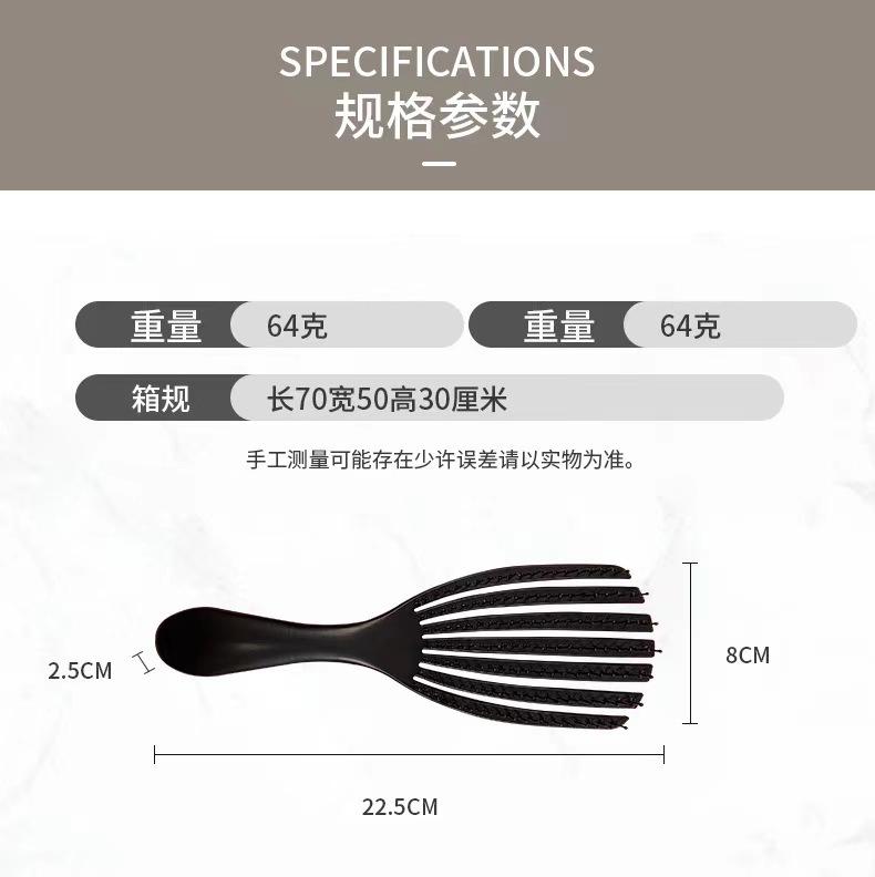 Peine de Concha Calado Peine de Peluquería para Peinar Cabello Esponjoso Masaje Meridiano Peine Antiestático Peine de Uso Húmedo y Seco para Mujeres