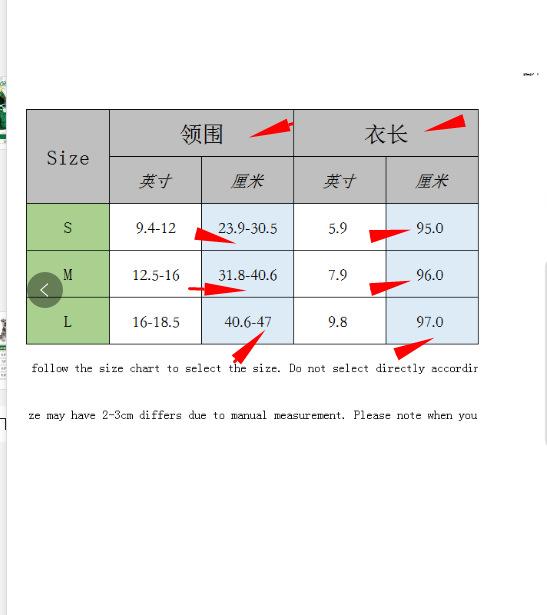 S neck circumference 32Cm, M neck circumference 40cm, L neck circumference 50cm