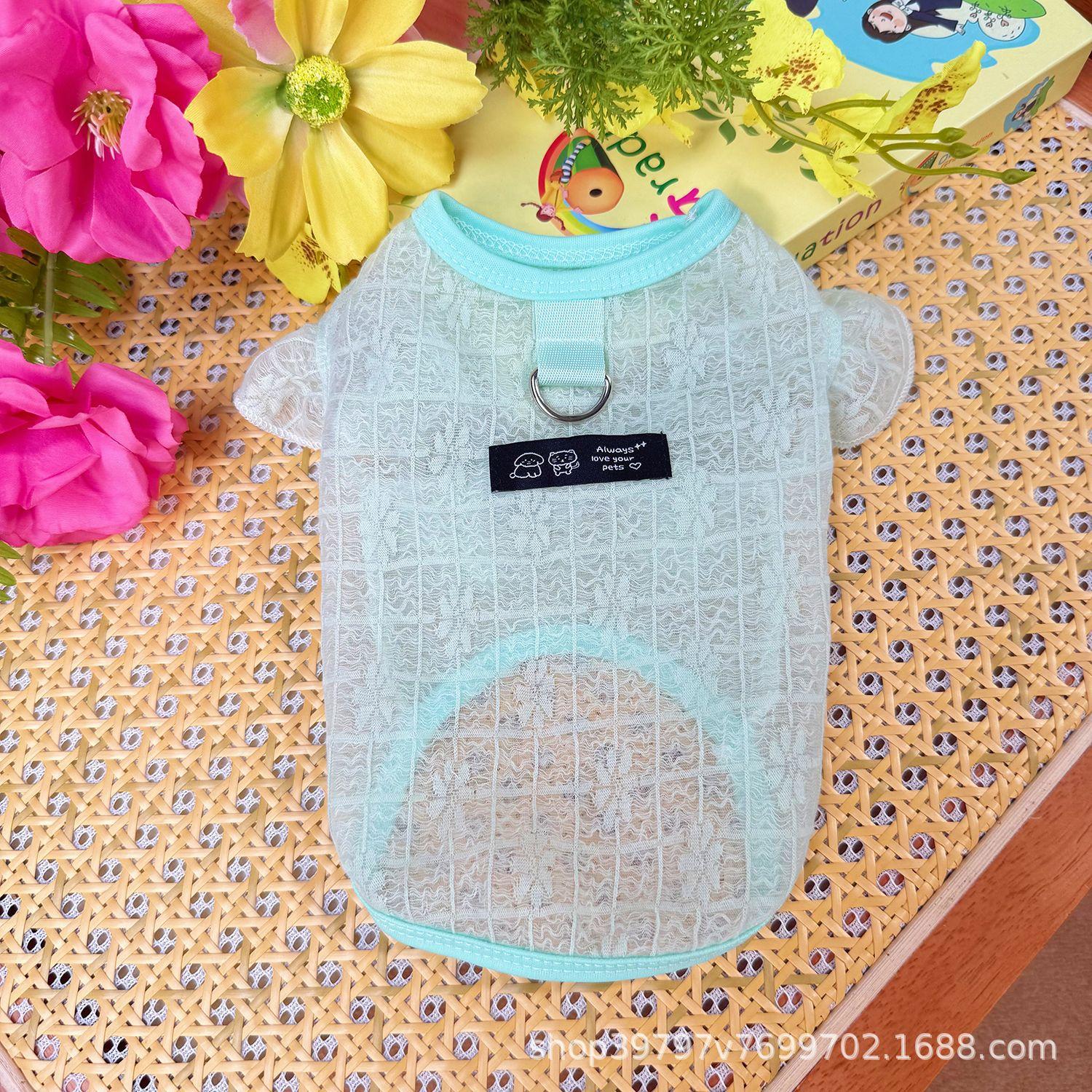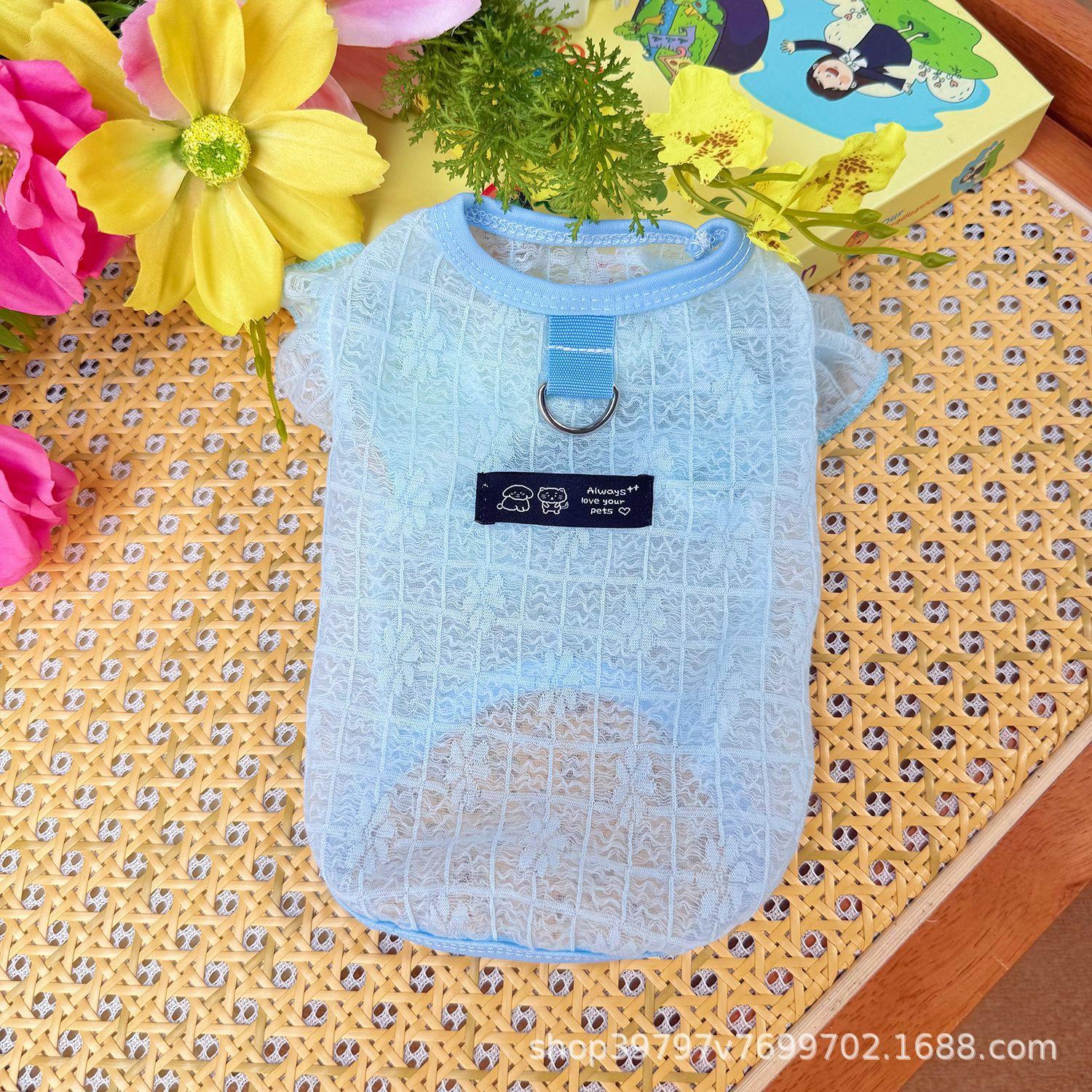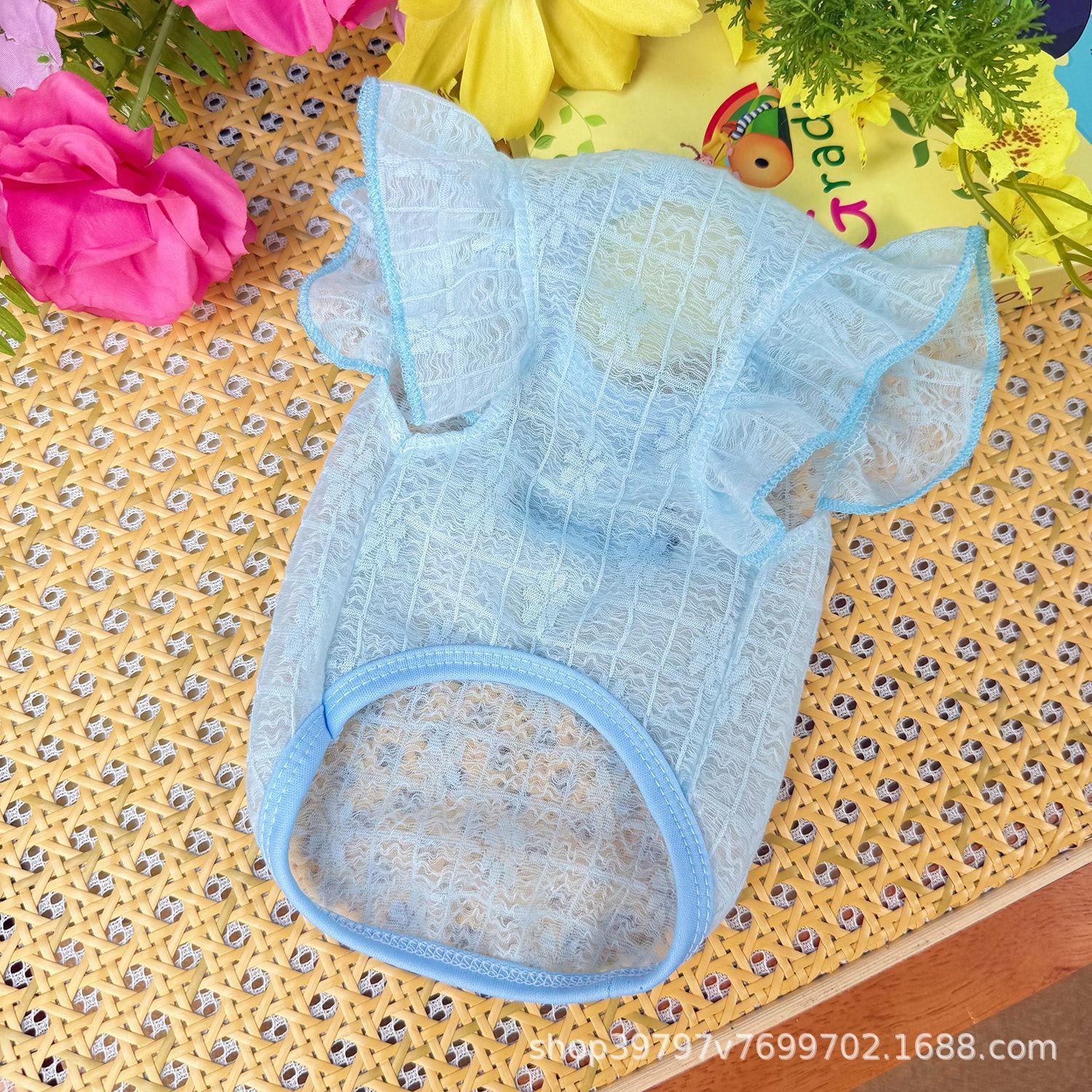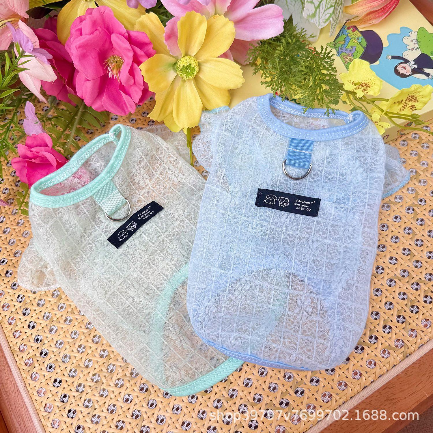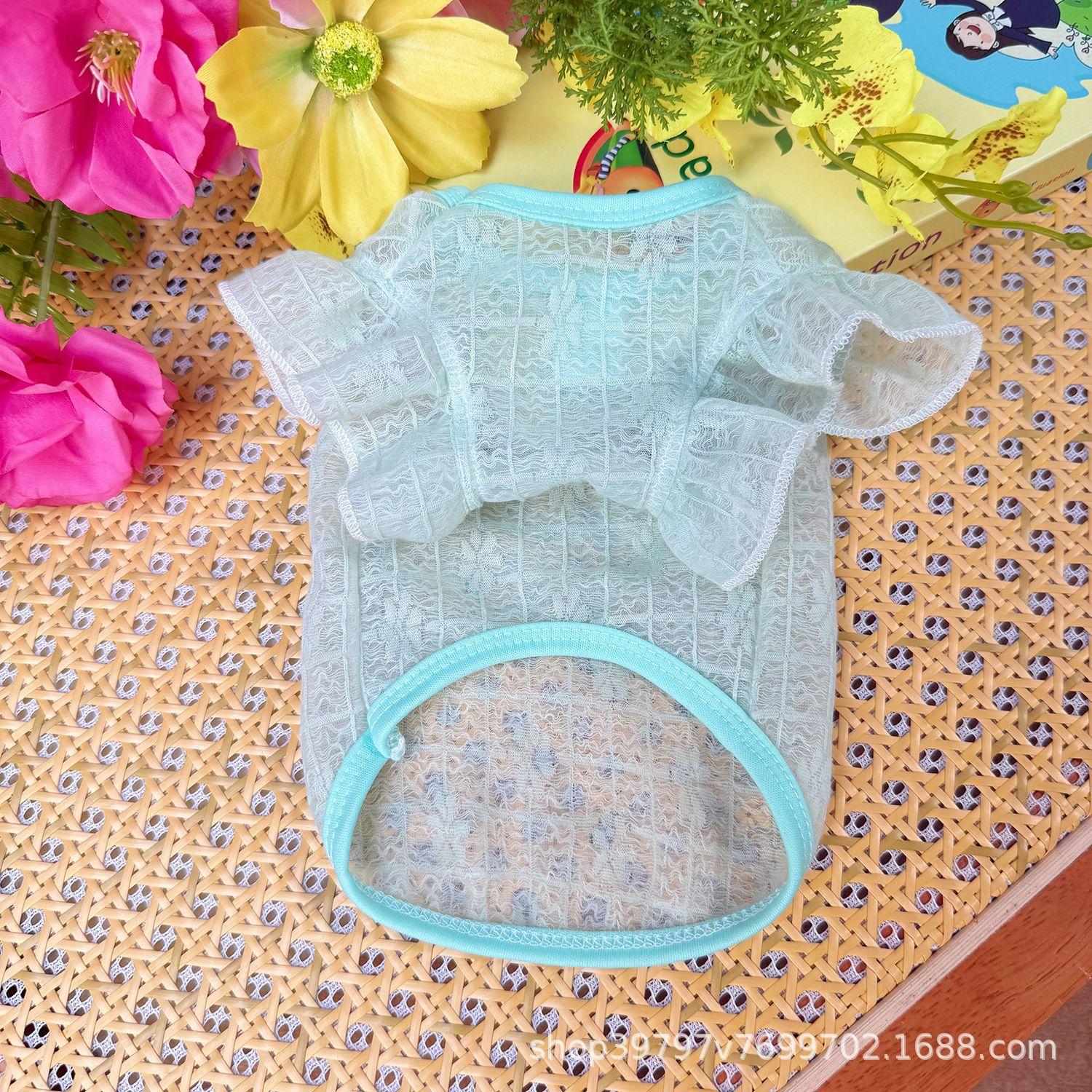 Ropa Delgada de Verano para Mascotas Malla Hueca Transpirable Ropa para Perro Gato Chaleco Manga Volante Lindo Teddy Bixiu