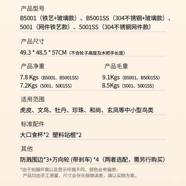 1. Las jaulas son artículos grandes y frágiles, y los costos de embalaje y envío son altos. Por favor, asegúrese de medir el tamaño requerido antes de comprar y luego haga su elección.