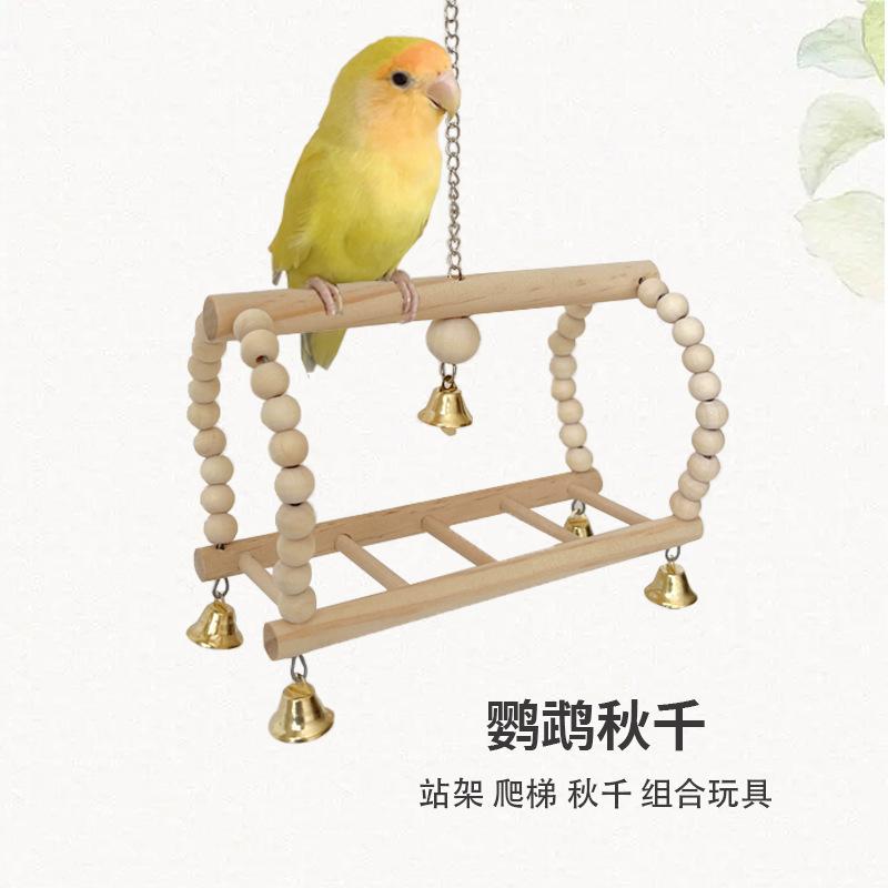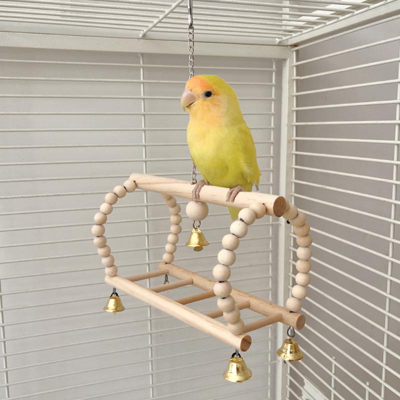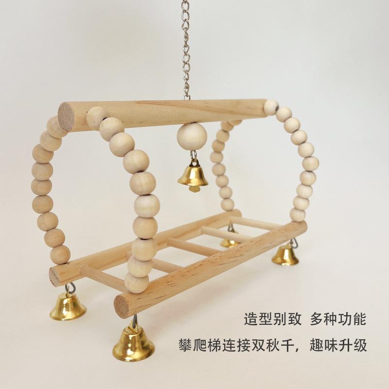 Columpio de Madera para Loro Color Madera Soporte para Pájaro Xuanfeng Peonía Escalera de Trepa Túnel Cuentas de Madera Puente Colgante Combinación Juguete para Loro