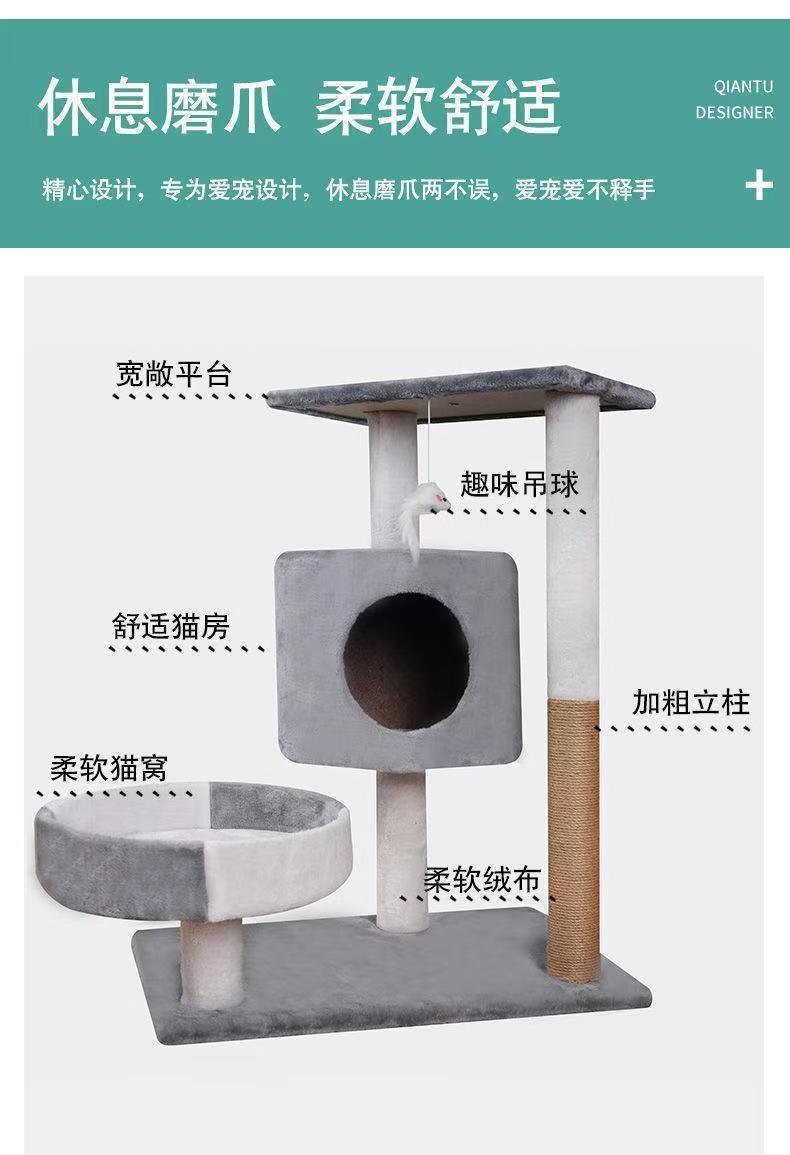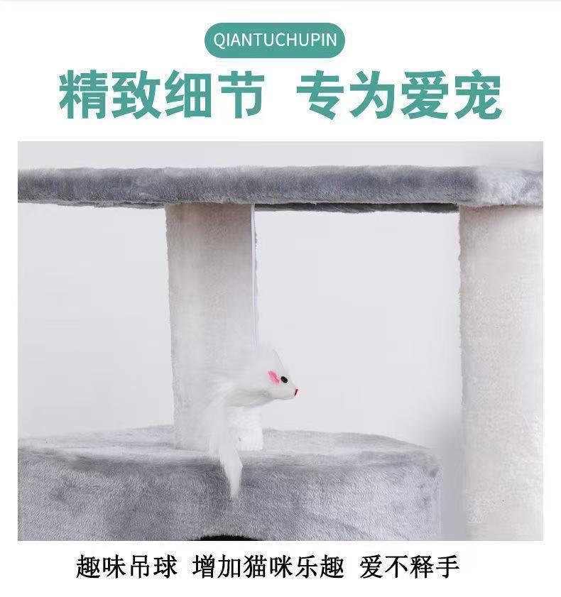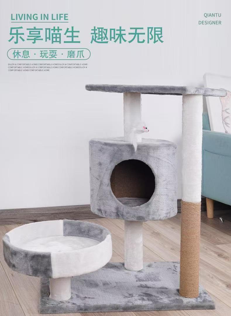 Wooden cat climbing frame flannel style light gray qs2-qs2-50*40*135cm