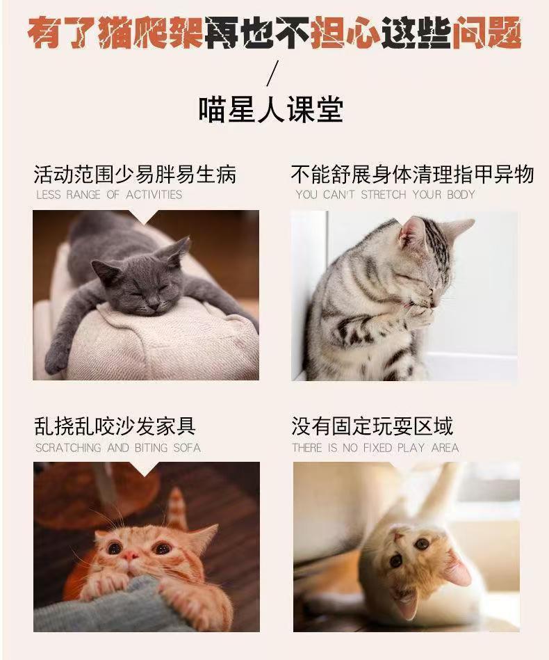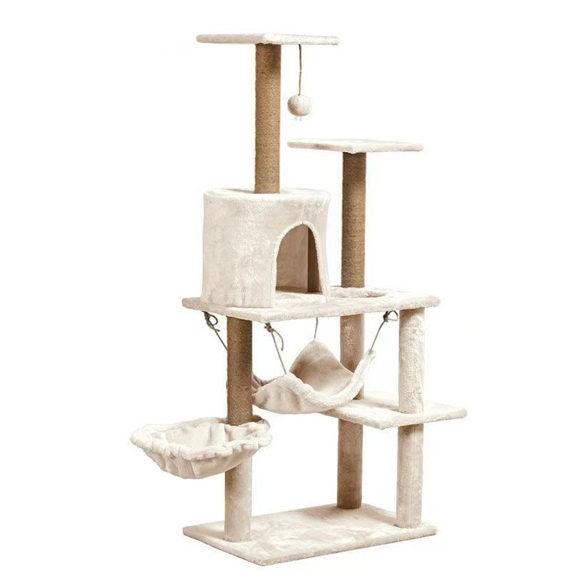 Wooden cat climbing frame flannel style light yellow qs2-50*40*135cm, Wooden cat climbing frame flannel style ...
