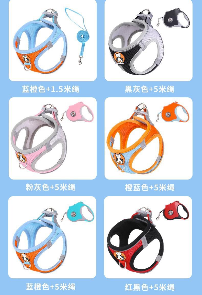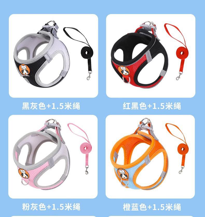 Correa para Perro Reflectante Anti-Escape Transpirable Arnés de Pecho Anti-Tirones Perro Pequeño Paseo Gato Cuerda Mascota Gato