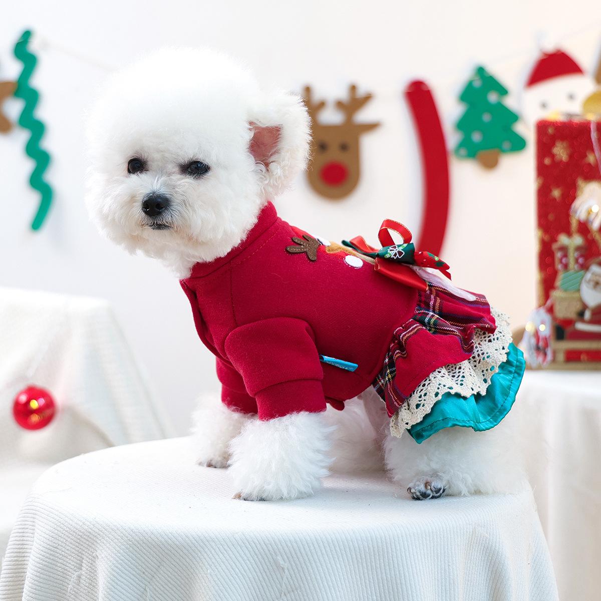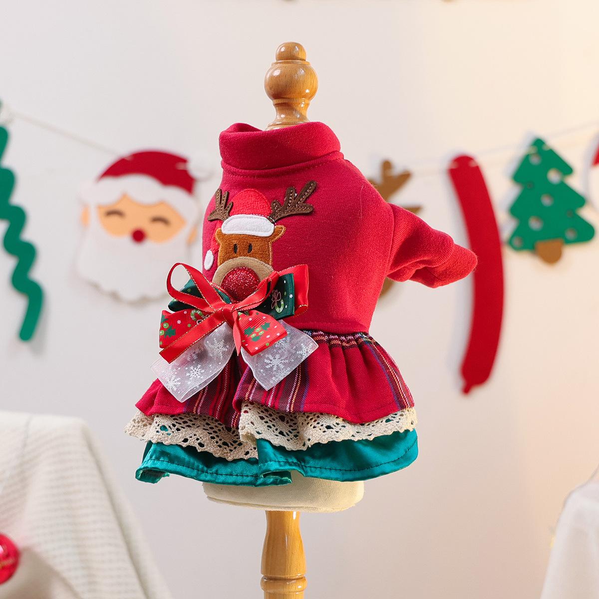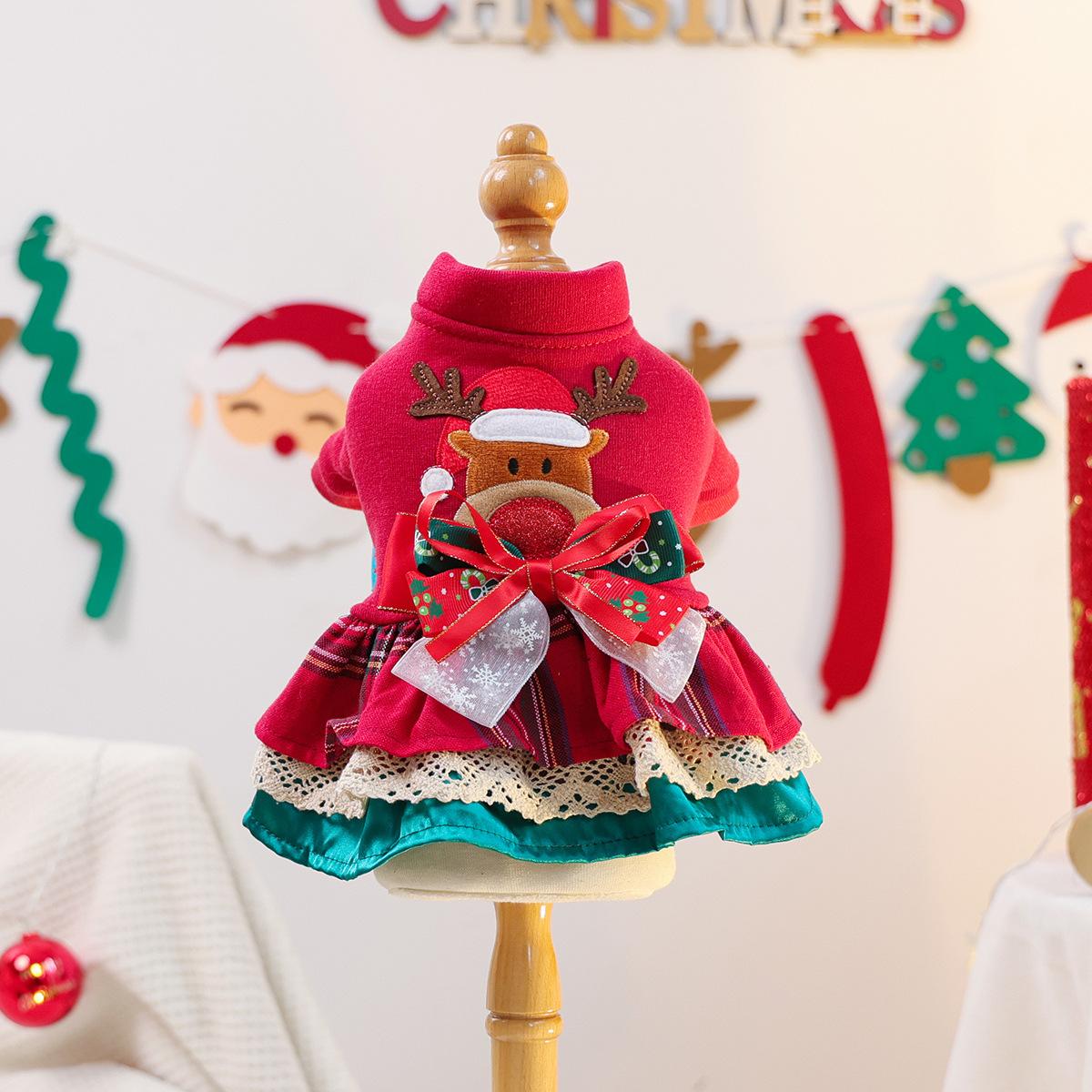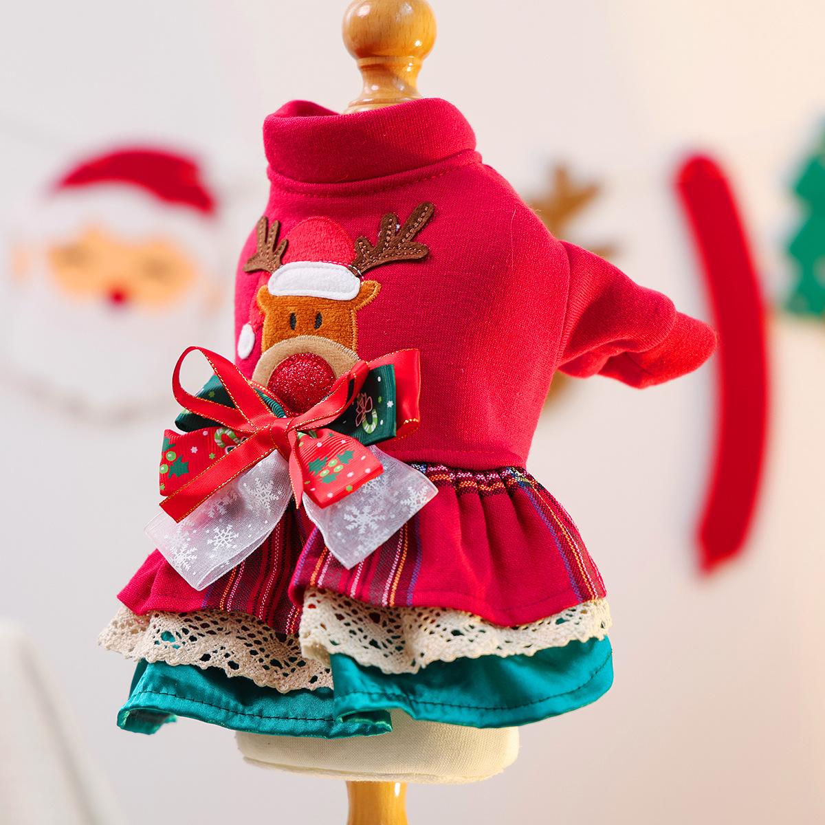 Ropa para Mascotas Otoño e Invierno Nuevo Perro Pequeño Cachorro Perro Feliz Gato Vestido Cálido Colección Vestido de Navidad Reno Copo de Nieve