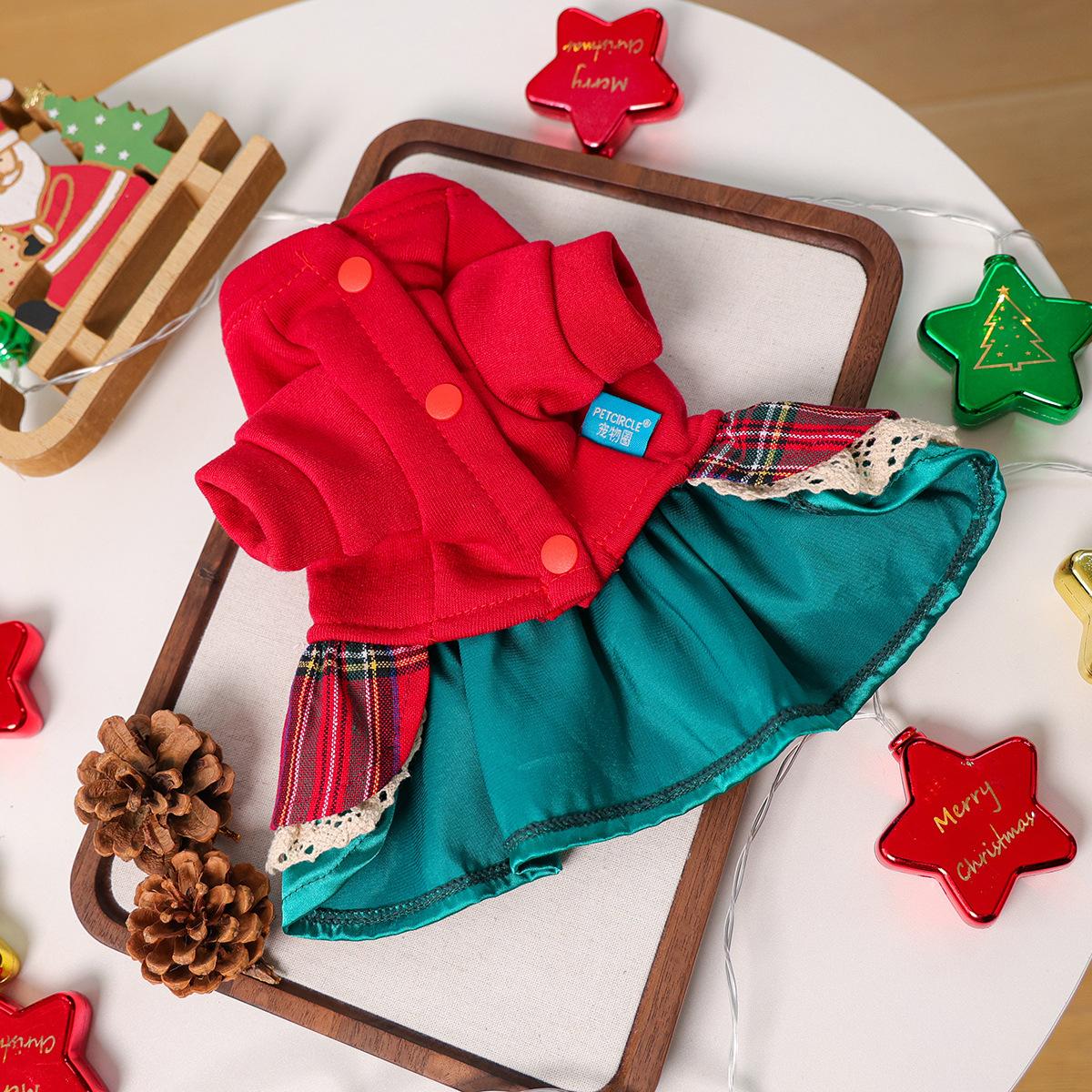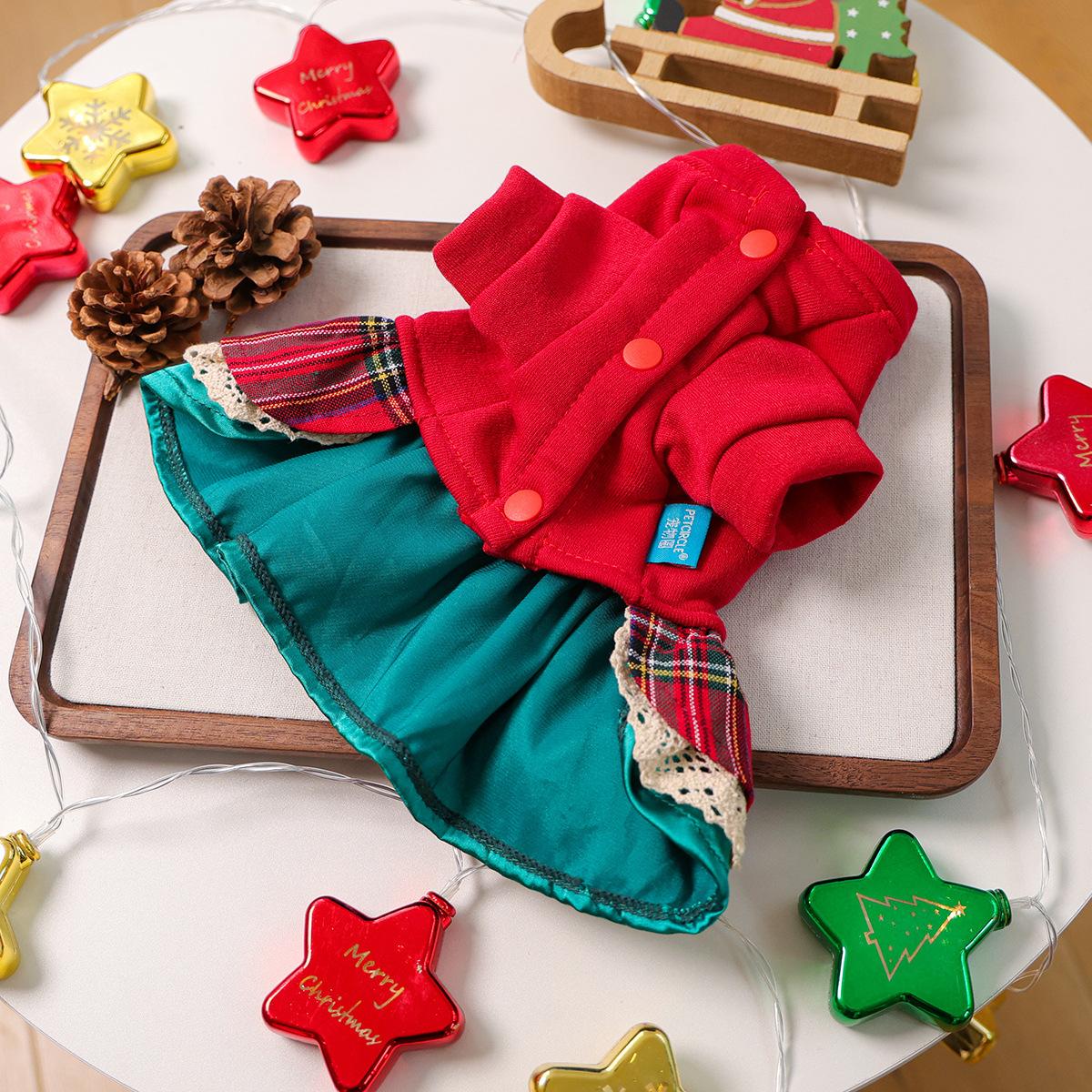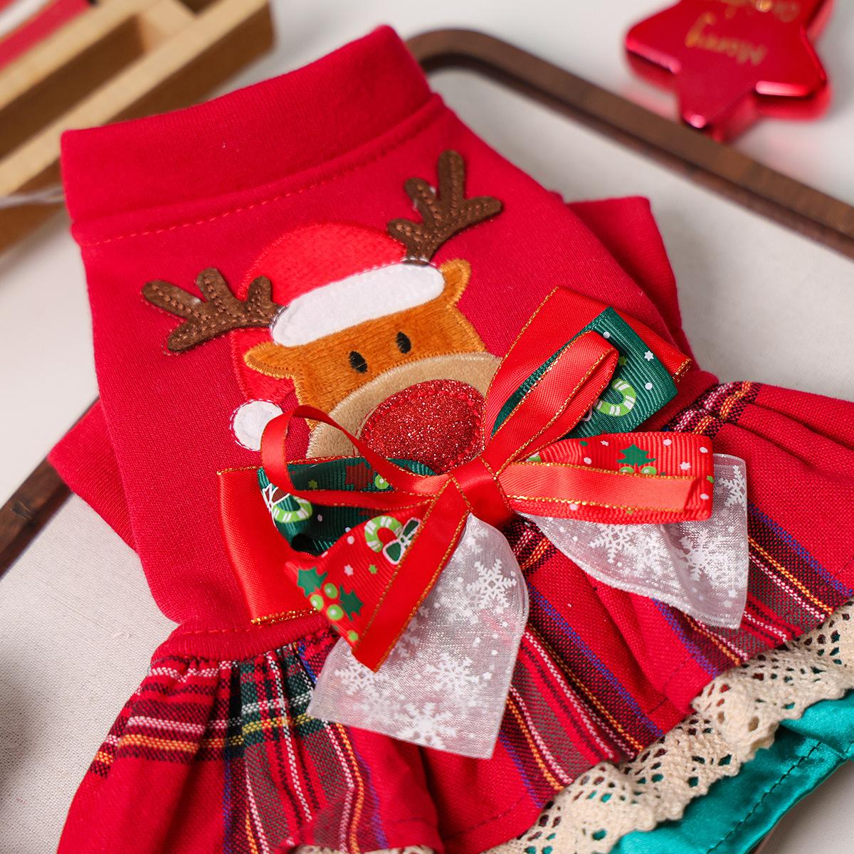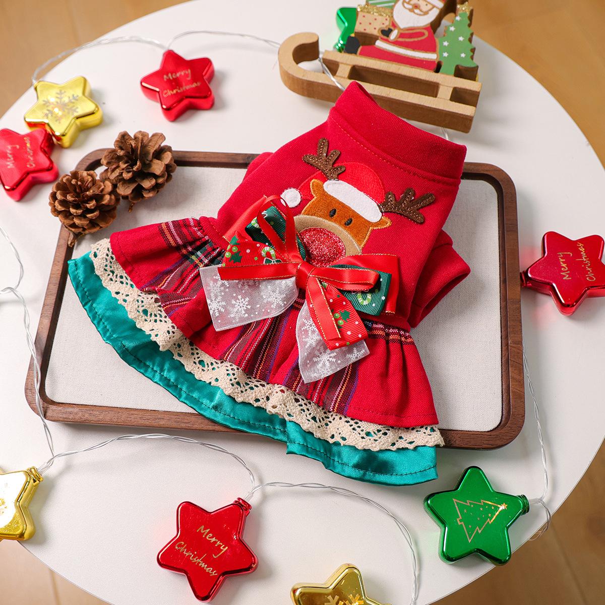 Ropa para Mascotas Otoño e Invierno Nuevo Perro Pequeño Cachorro Perro Feliz Gato Vestido Cálido Colección Vestido de Navidad Reno Copo de Nieve