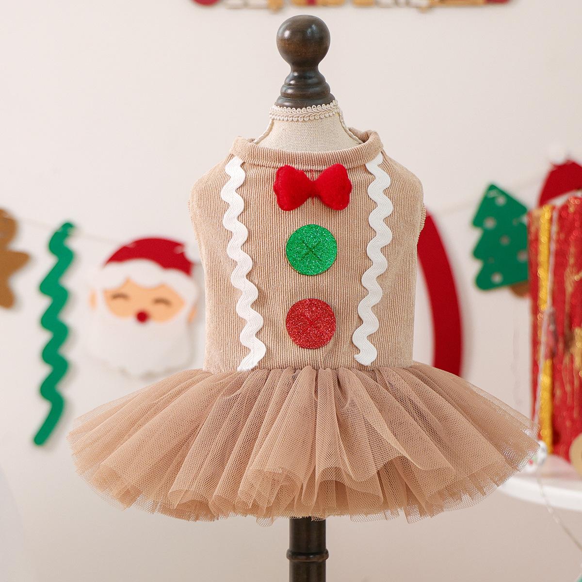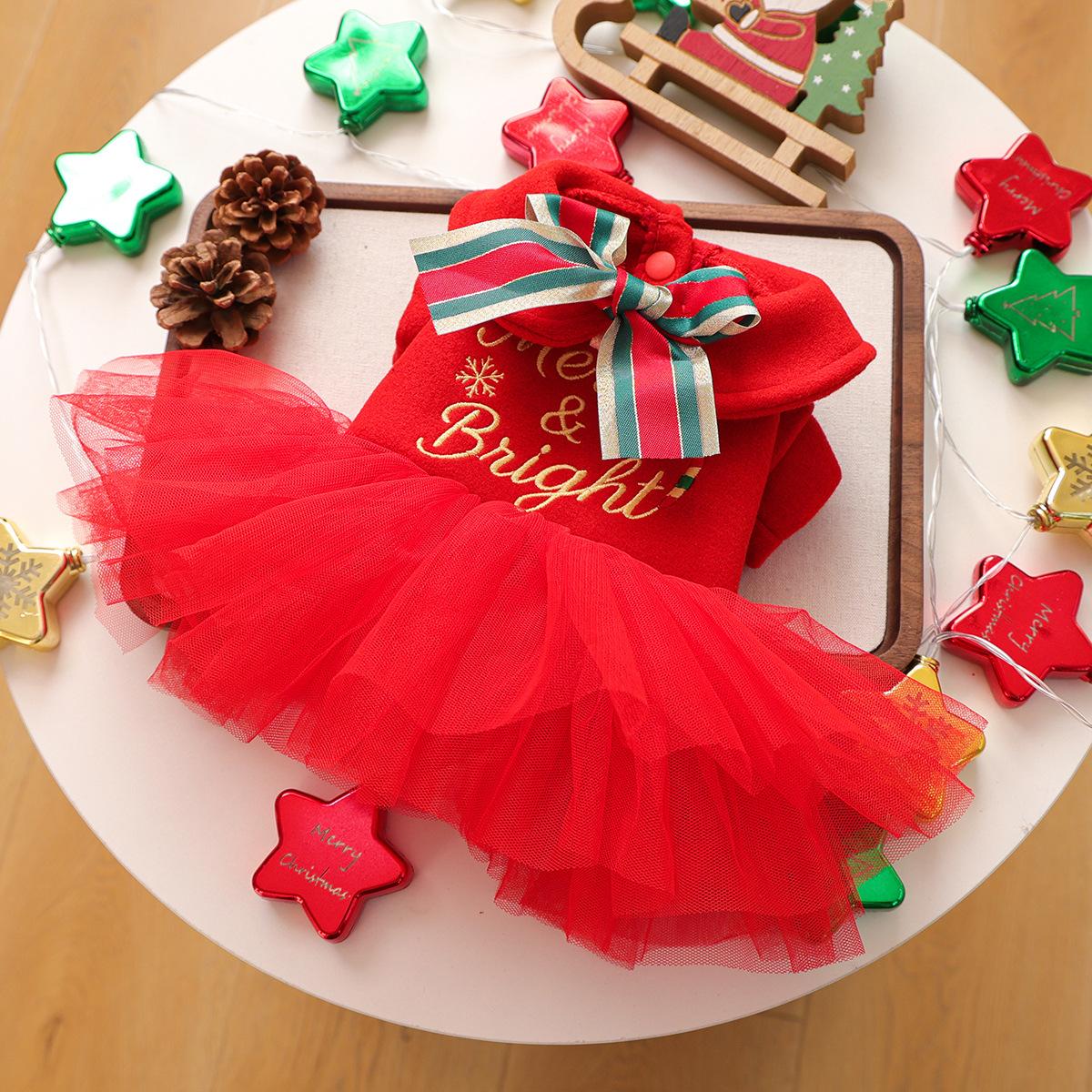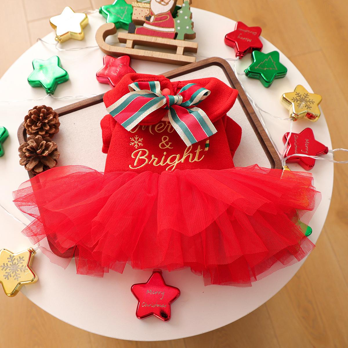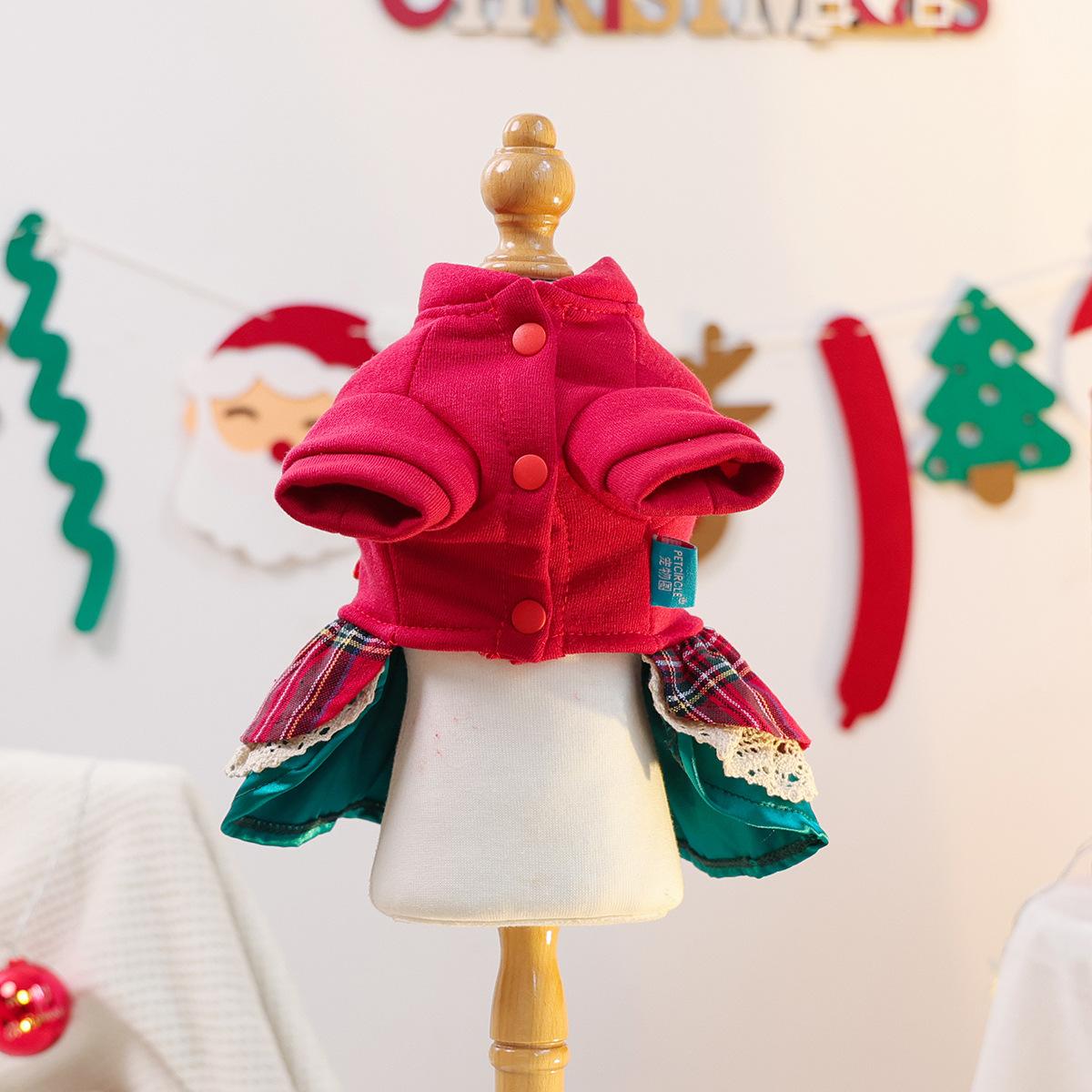 Ropa para Mascotas Otoño e Invierno Nuevo Perro Pequeño Cachorro Perro Feliz Gato Vestido Cálido Colección Vestido de Navidad Reno Copo de Nieve