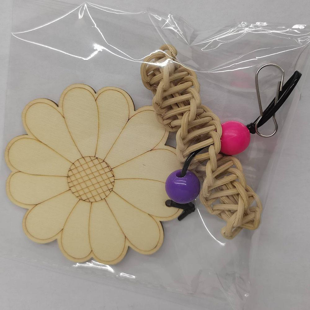 Juguete para Masticar para Loro con Forma Tejida de Ratán de Venta Caliente Flor Floreciente de Madera Juguete de Cuero para Pájaros Color Aleatorio