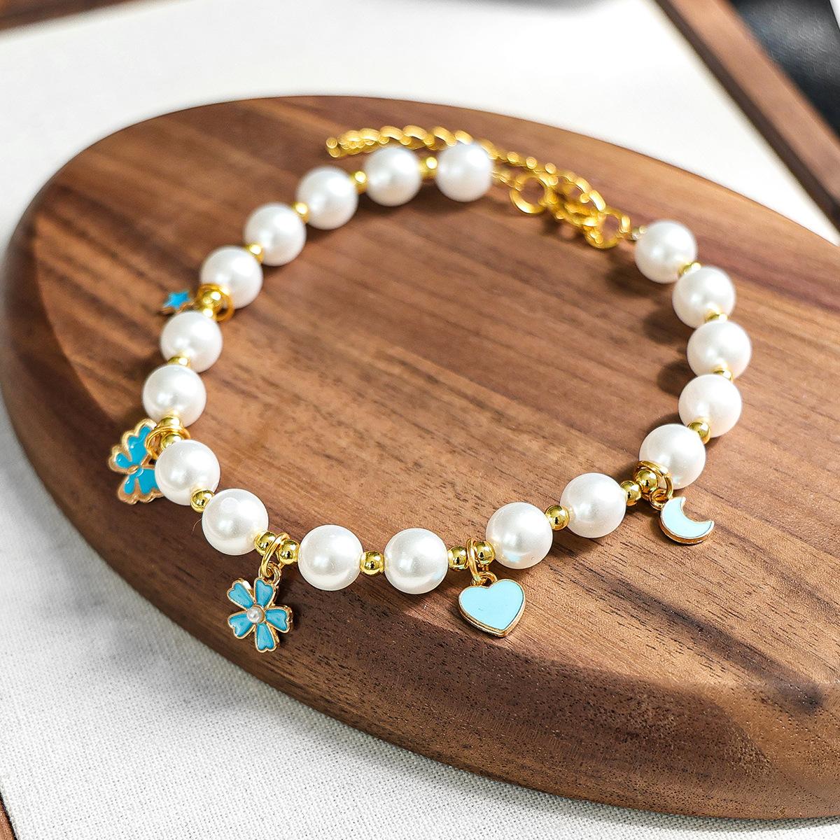1pc rich fashion crystal necklace, 1pc flower bell pendant pearl necklace-pink, 1pc flower bell pendant pearl ...