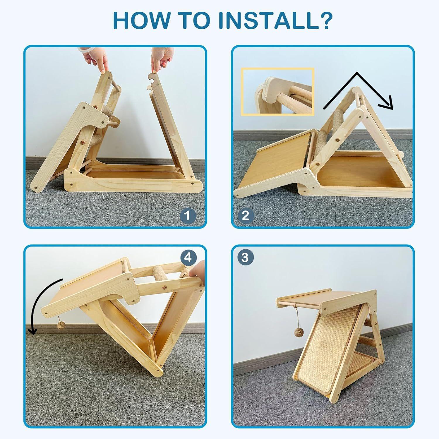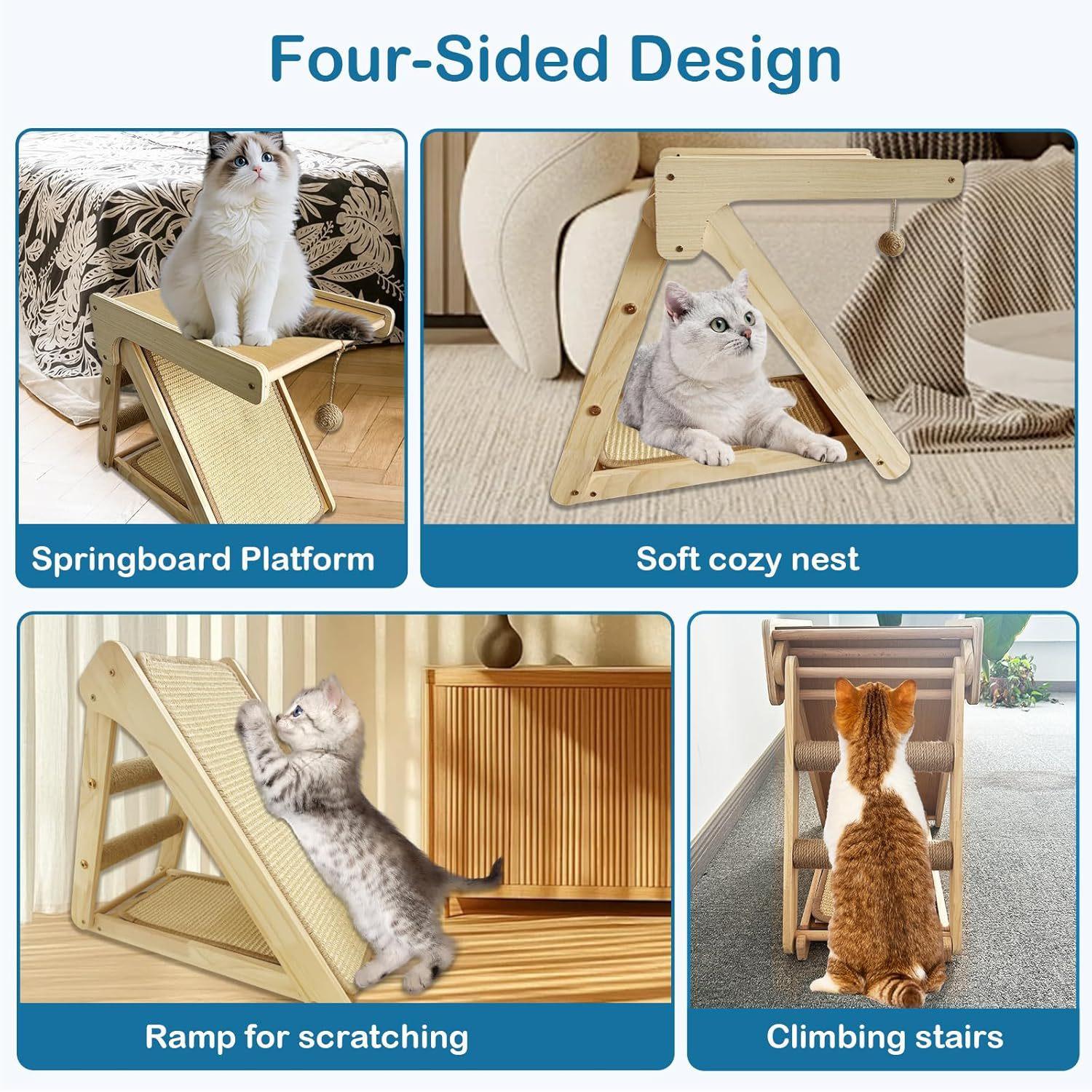 Nido para Gato y Rascador Integrado Madera Maciza Resistente al Desgaste Marco para Trepar para Gatos Espacio Pequeño Alfombra de Sisal Tapete Rascador para Gatos Juguete para Gato