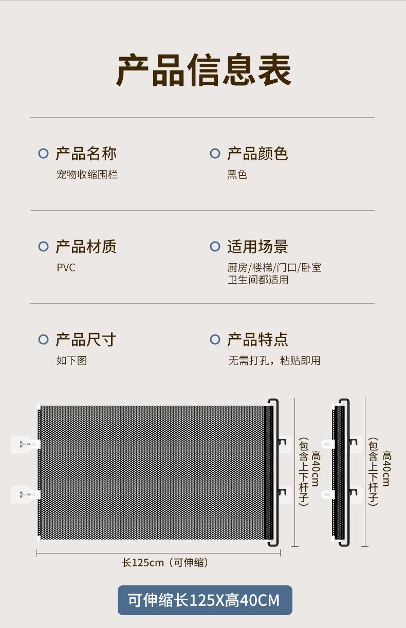 40*125cm pet fence (retractable and not in the way, maximum width 125cm )