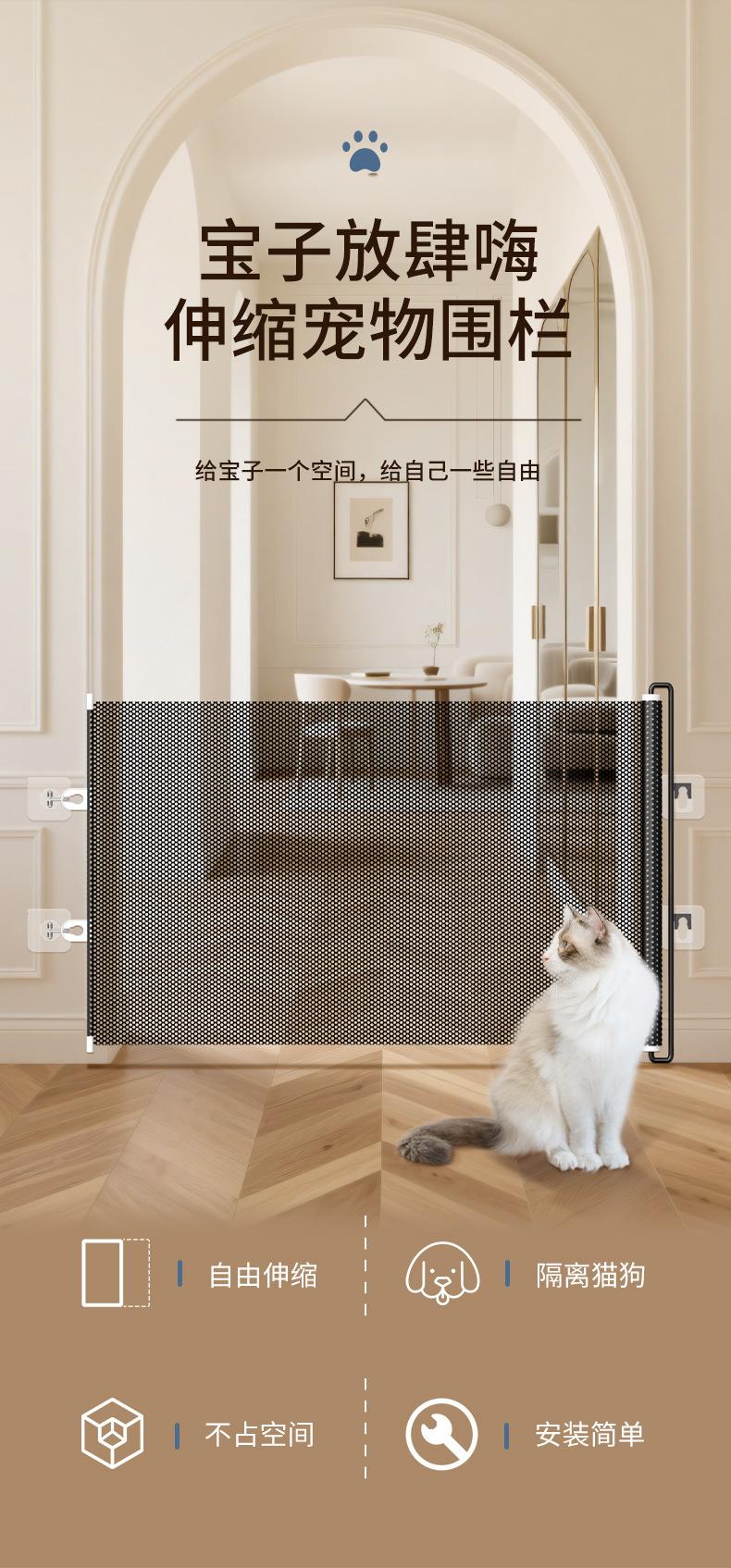 50*125cm pet fence (retractable and not in the way, maximum width 125cm )