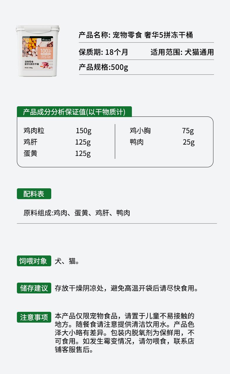 Exquisite barrel luxury five-piece freeze-dried 500g