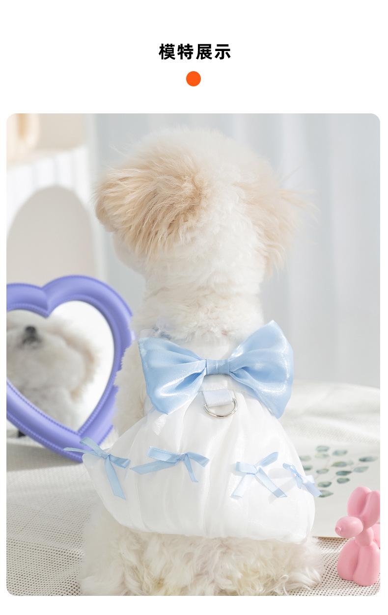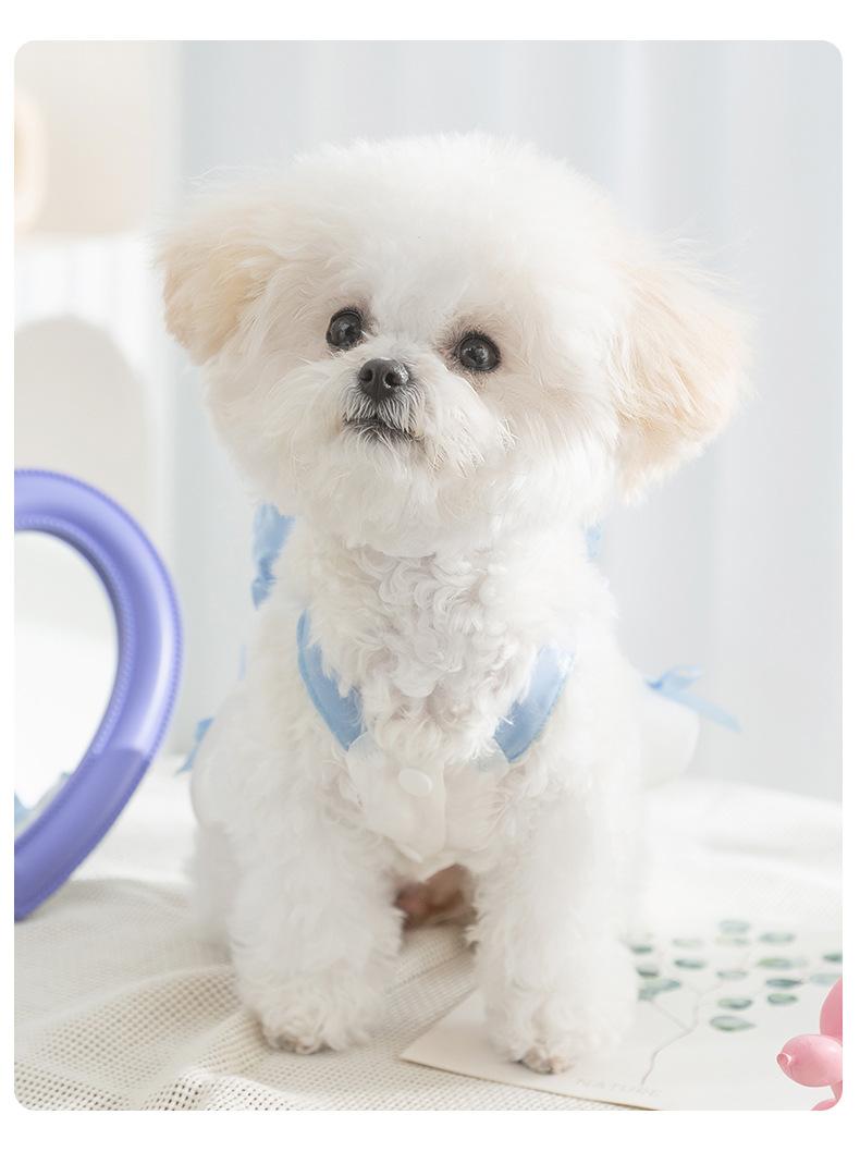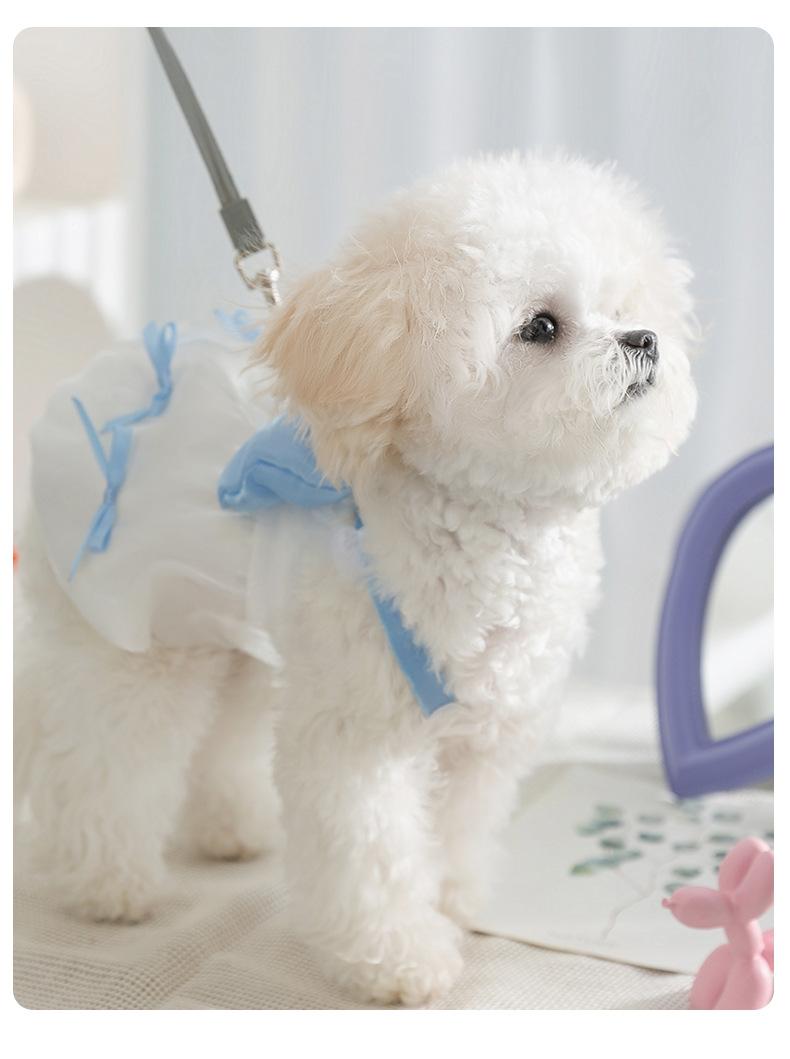 Falda de tirantes con lazo azul colorido para perro pequeño Bichón gato ropa de moda para mascotas