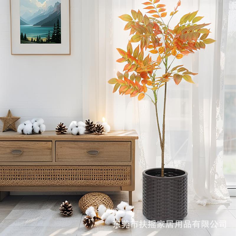 Maceta Grande de Plástico PE Estilo Simple Transfronterizo Imitación Bambú Espesada Transpirable Redonda para Plantar Flores Pothos Venta al por Mayor
