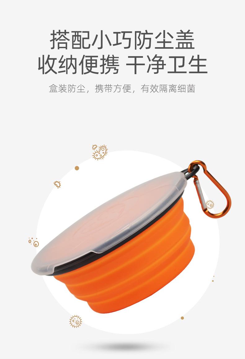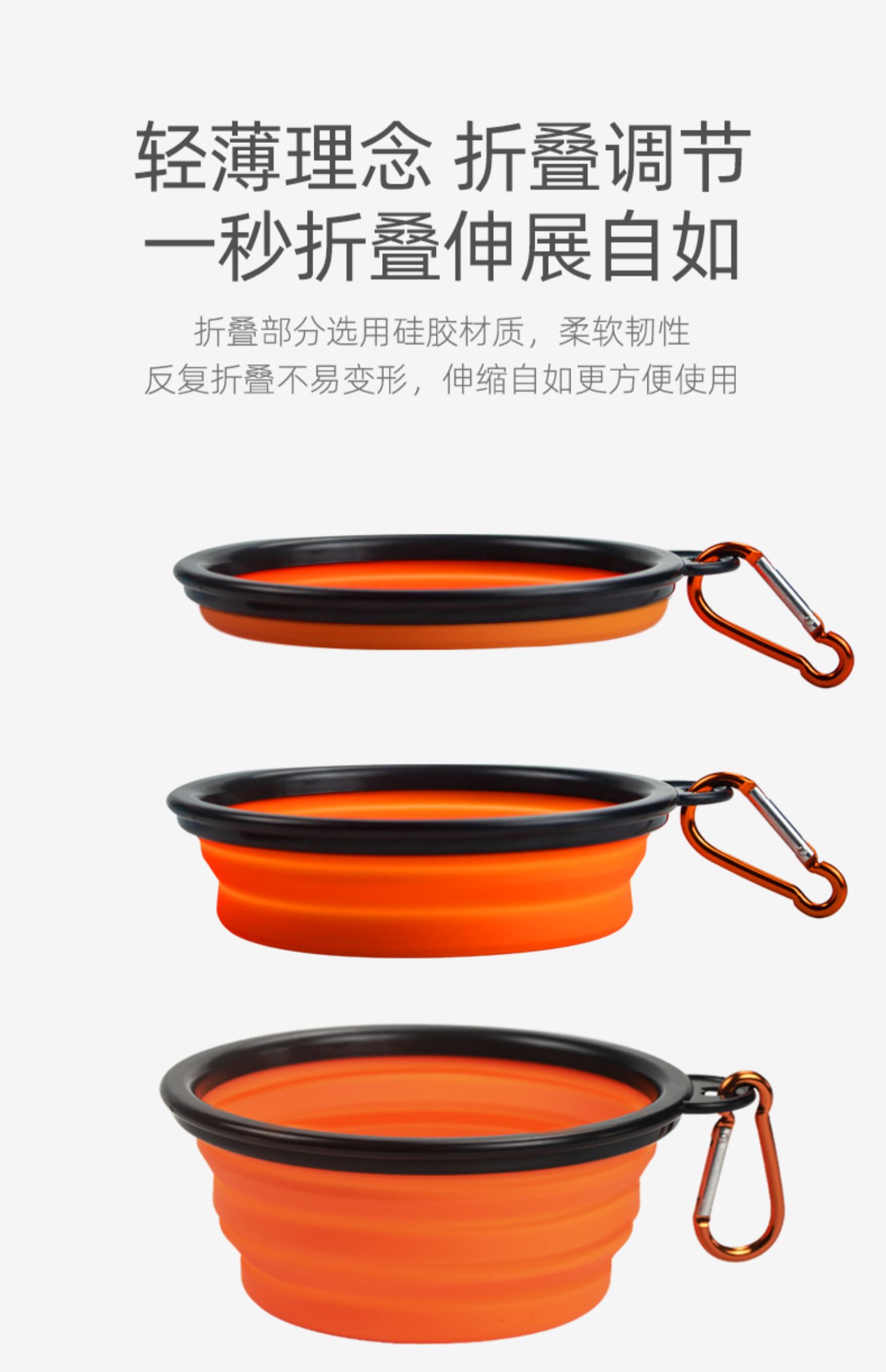 Rubber Folding Bowl (without lid) - Orange Large 1000ml (recommended for flat-faced dogs/cats, medium to large dogs choose this size) with buckle