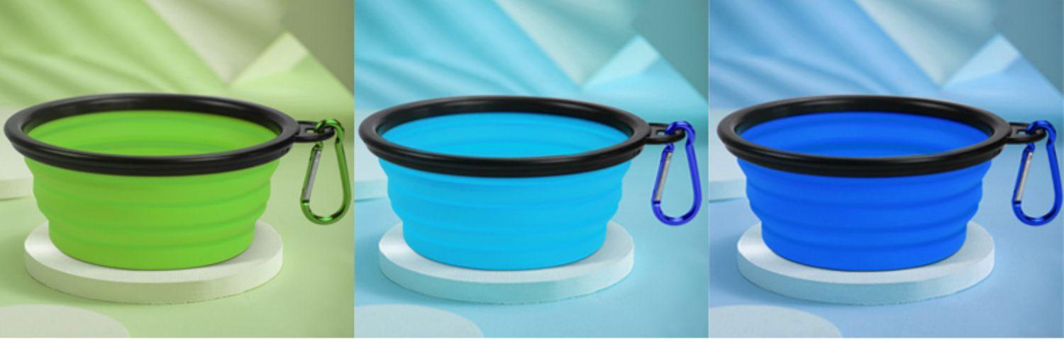 Rubber Folding Bowl (without lid) - Blue Large 1000ml (recommended for flat-faced dogs/cats, medium to large dogs choose this size) with buckle